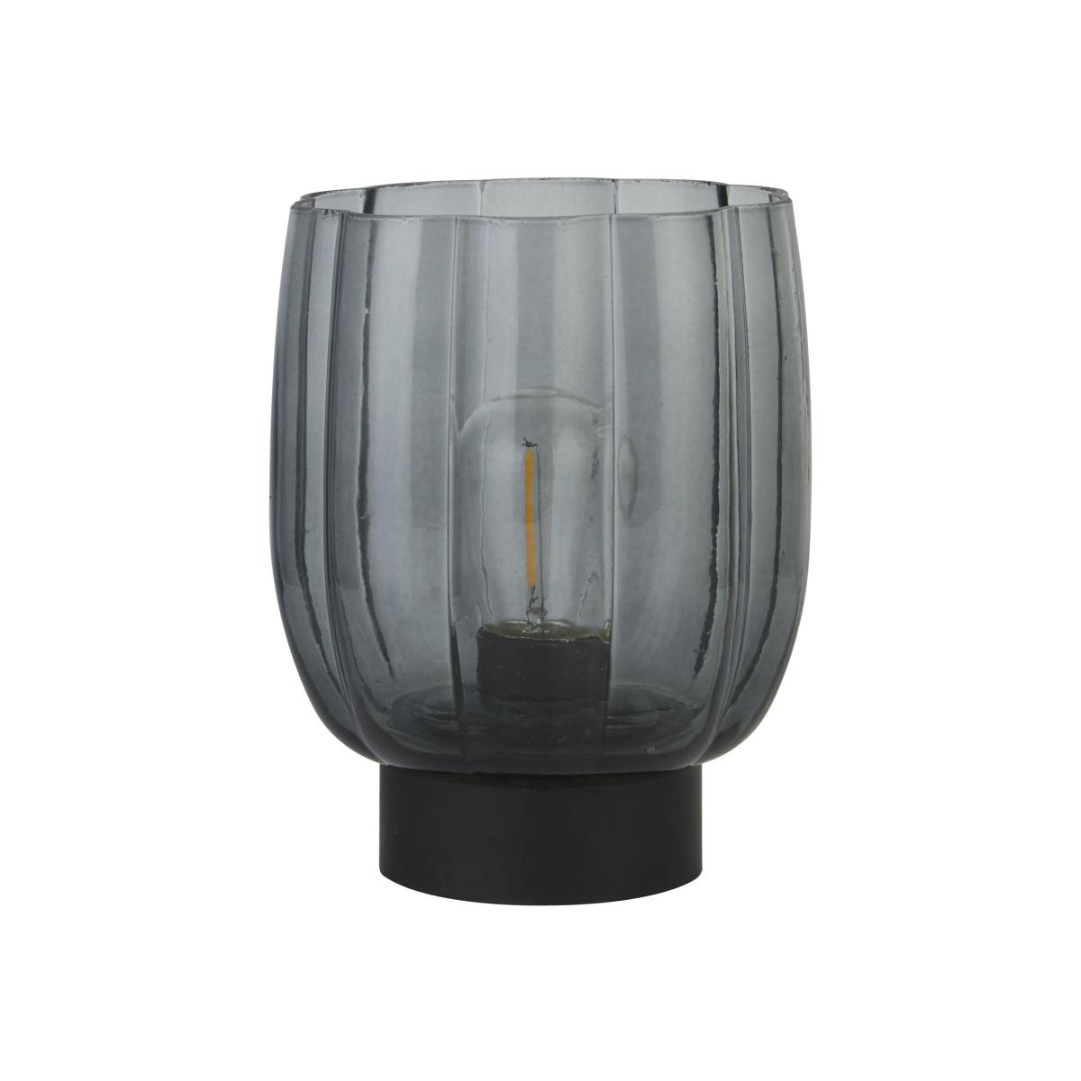 Perfect for modern spaces seeking an elegant touch, the Smoke Glass Battery Lamp features a sleek matt black finish. Made with durable mild steel, plastic, and glass, it boasts a ridged smoked glass shade and integrated LED.