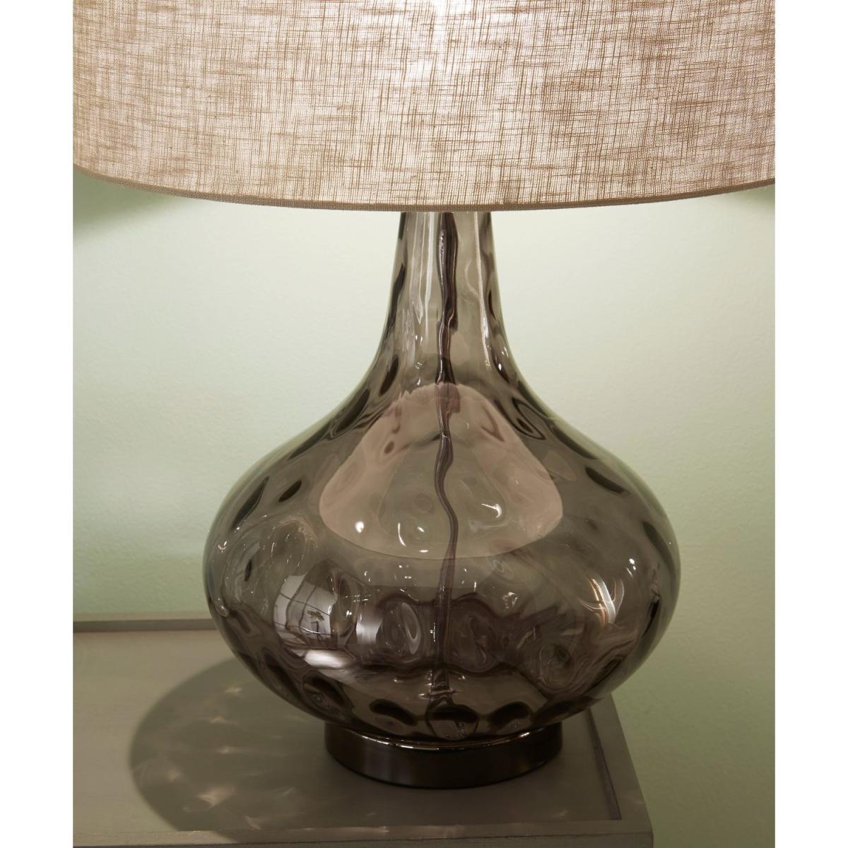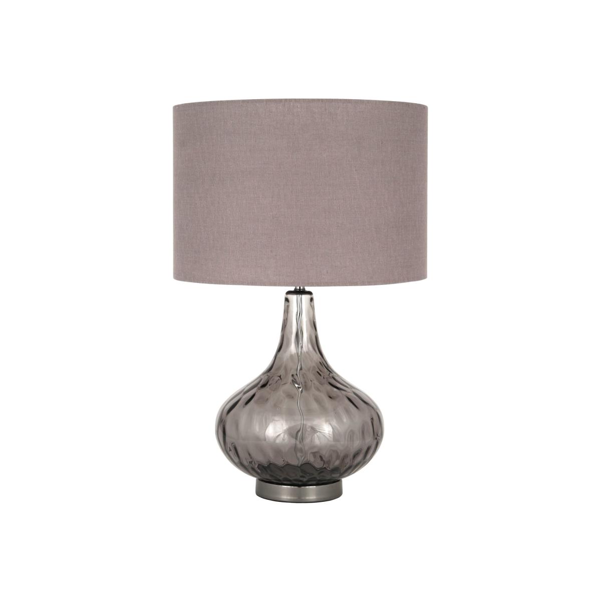 I love this table lamp for its subtle elegance and versatile appeal. The smoke glass dimpled base adds texture and a touch of vintage charm, making it a great statement piece without overpowering a space. It's particularly effective in contemporary or transitional interiors, where its muted palette complements both neutral and darker colour schemes. For styling tips, consider pairing it with soft textiles and metallic accents to create a cohesive look, or place it on a side table or console to add ambient lighting without clutter. Its understated design makes it adaptable to living rooms, bedrooms, or even hallway consoles, offering both function and style with minimal fuss.