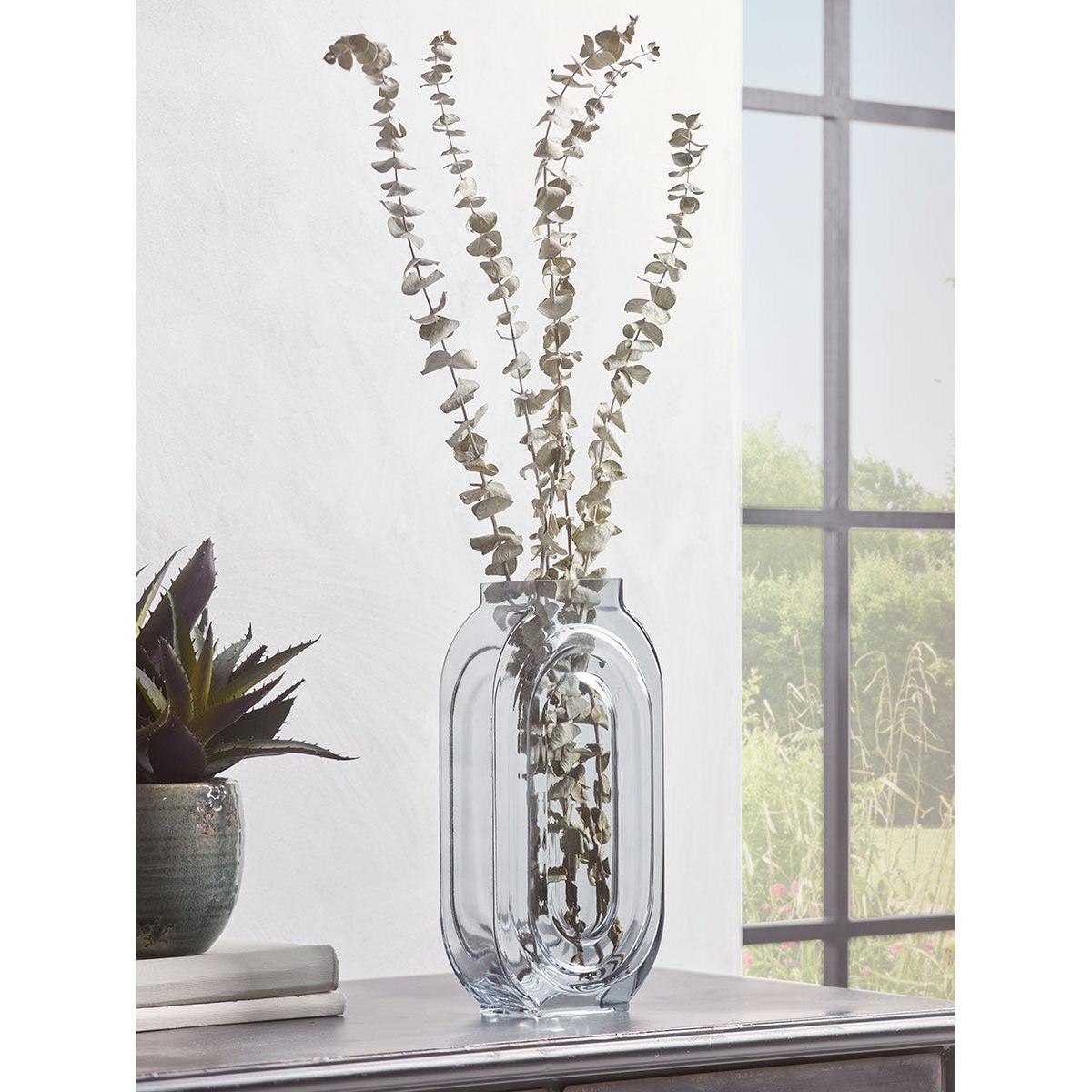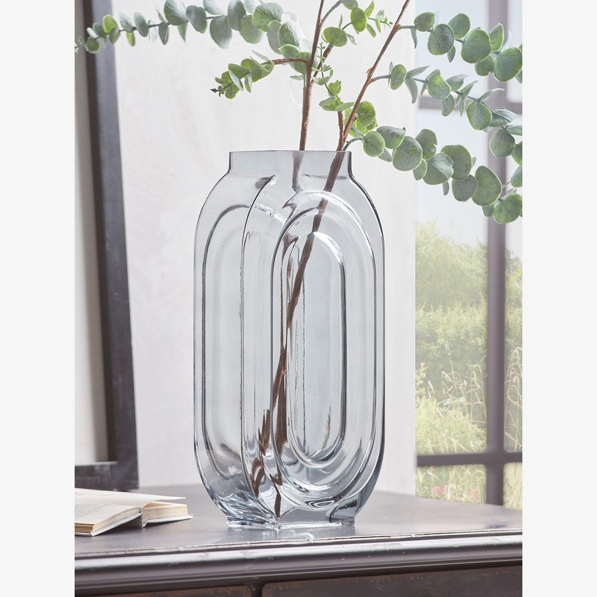 I love this vase for its modern, sculptural form and the smoky tint that adds a hint of mystery without overpowering a space. It works particularly well in minimalist interiors or paired with natural textures like linen or wood, where its contemporary design can stand out. Practical styling tips include keeping floral arrangements simple and understated, such as single stems or small bouquets, allowing the vase's shape and colour to be focal points. It also looks striking when empty, positioned on sideboards or mantlepieces to bring in an element of airy sophistication.