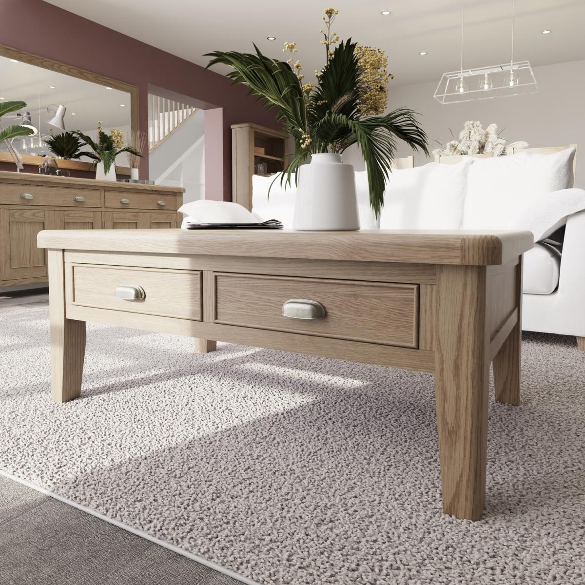 This smoked oak large coffee table is a versatile piece that anchors a variety of interior styles, from contemporary to Scandi or even rustic schemes. I love its natural wood finish which adds warmth and a touch of understated elegance to a living space. It’s practical for informal styling-layer it with books, trays, or small decorative objects to create an inviting, lived-in look. Due to its generous size, it works especially well in open-plan living areas or larger sitting rooms, providing ample surface area without feeling overwhelming. Keep styling simple and cohesive by pairing it with neutral or soft-toned accessories, and consider adding a few natural elements like a small bouquet or candles to enhance its organic feel.