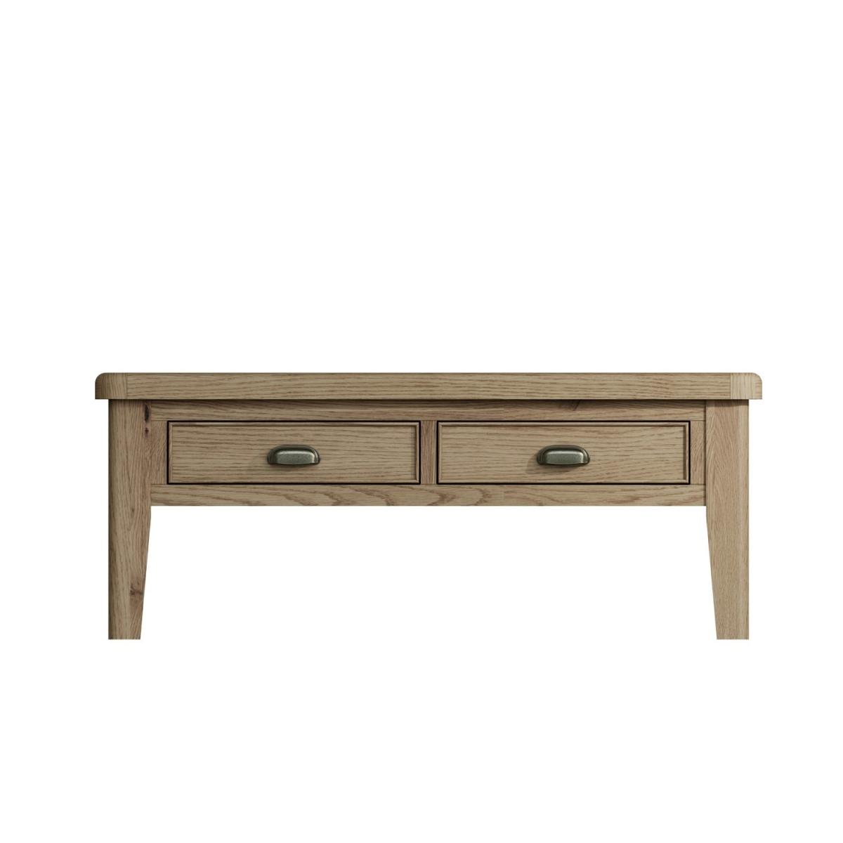 4 Dovetailed Storage Drawers Tapered Legs Chunky Oak Top with Rounded Corners Ready assembled