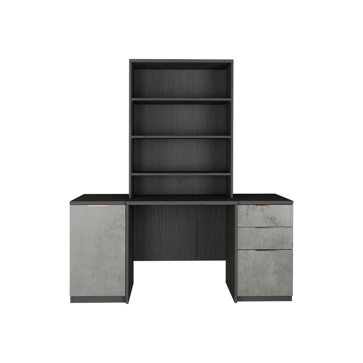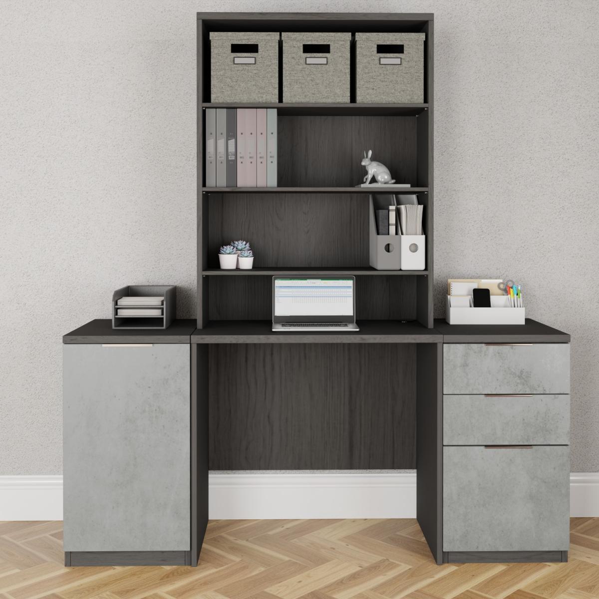 Dimensions:H185 x W161 x D46 cm A ready to assemble desk, 1 door cabinet, filing cabinet and bookcase set for the home office. Package provides practical storage and creates a great working space. Features: Finished in a stylish smoked oak effect Manufactured in a robust, easy-clean, surface resistant material 25mm thick tops with durable edging and 18mm thick back panels for rigidity Adjustable foot levellers allow for uneven floors Easy assembly