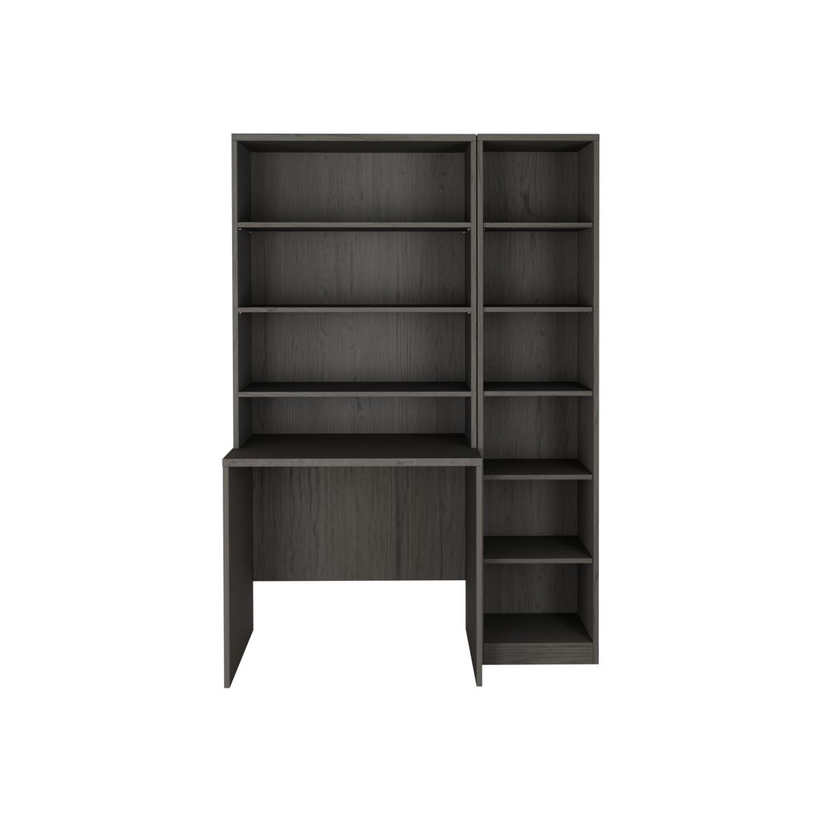 Dimensions:H185 x W120 x D46 cm A ready to assemble desk and 2 bookcases set for the home office. Package provides practical storage and creates a great working space. Features: Finished in a stylish smoked oak effect Manufactured in a robust, easy-clean, surface resistant material 25mm thick tops with durable edging and 18mm thick back panels for rigidity Adjustable foot levellers allow for uneven floors Easy assembly