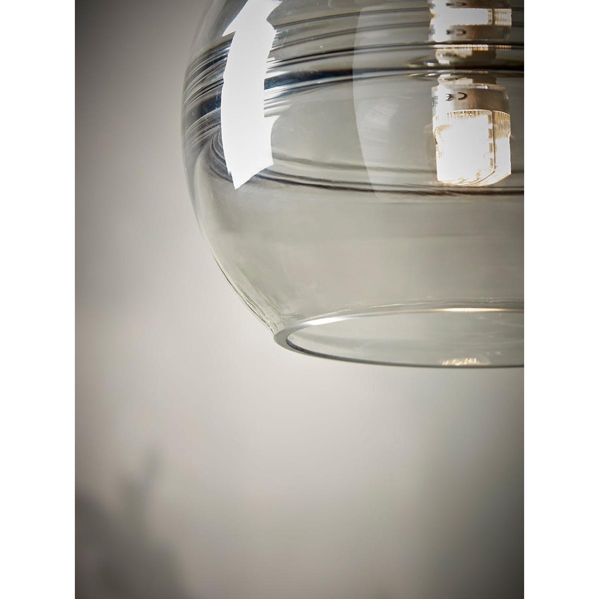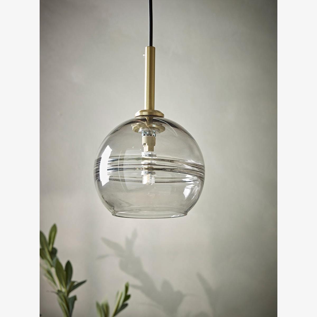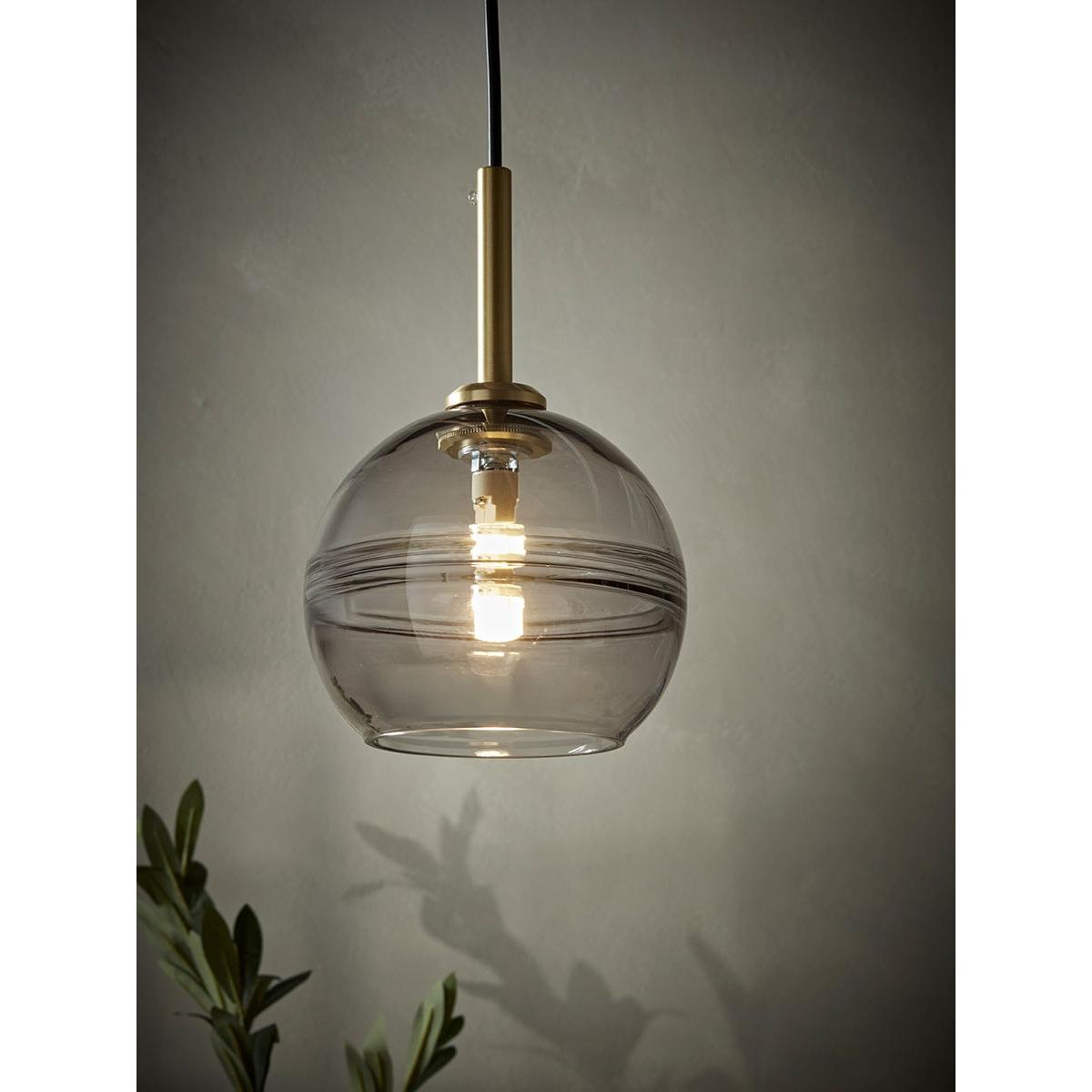 Crafted from a smoked glass, this pendant is the perfect display of contemporary elegance. Finished with gold hardware, the simple dome shape has a ribbed design in the middle which provides a unique and atmospheric glow in your home, perfect for adding a touch of luxury to your space.  Discover how to create the perfect lighting scheme for your home using our Lighting Buying Guide.