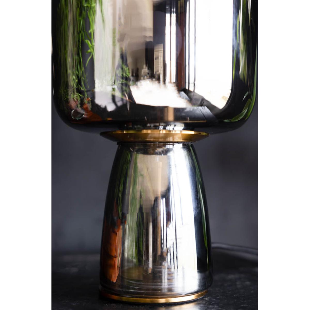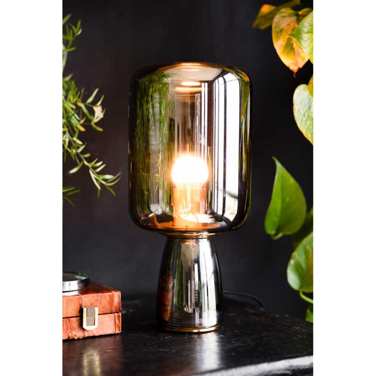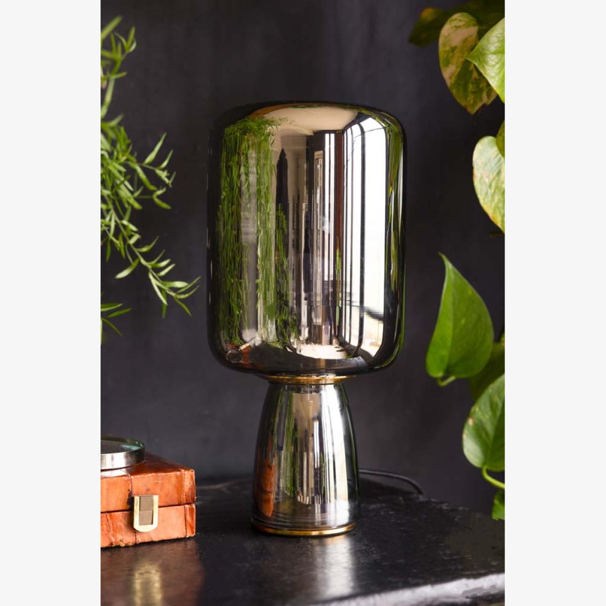 Smoked glass lighting never fails to add a touch of elegance and luxury to a room, which can be dialled up or down, depending on how glam you want to go! This table lamp packs a design punch that belies its short stature, and it’s clever, too. Switched off, it looks opaque, with a solid silver effect, but switch it on and ta-da! The bulb housed within jumps to life, bathing your surroundings in a warm golden glow, making this lamp perfect for the hallway, bedroom or living room. Made from smoked glass and featuring fine gold detailing at the neck of the shade and around the rim of the base, this lamp is a sleek, timeless classic. With a black flex and on / off switch designed to stay hidden behind the base of the lamp, it's all about clean lines and sophistication. Use to create soft lighting that showcases bigger key pieces in your space, or simply make this the hero of the hour. - Smoked glass table lamp - Measures: H33.5cm x W15.5cm - Black flex with on / off switch - Bulb: E27. Max. 40 watts