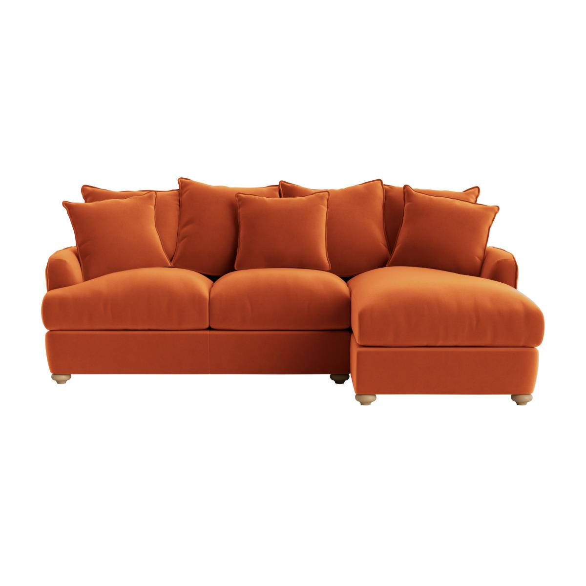 I love this Smooch chaise sofa because its clever velvet in Bobbing Buoy brings a rich yet relaxed vibe to any living space. The large left-hand corner makes it versatile for open-plan layouts or cosy corners, especially when styled with layered textures like throws and cushions in complementary tones. Its warm hue works beautifully in both modern and vintage interiors, adding a splash of colour without overwhelming. For practical styling, pair it with a soft rug underneath and simple side tables to create a cosy, inviting nook. It’s an ideal statement piece that balances comfort with style, perfect for relaxed lounging with a touch of sophistication.