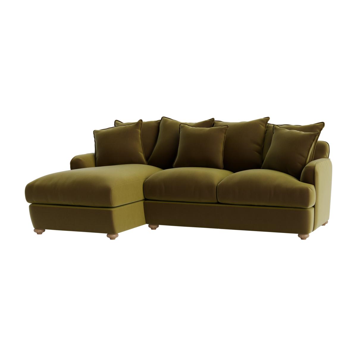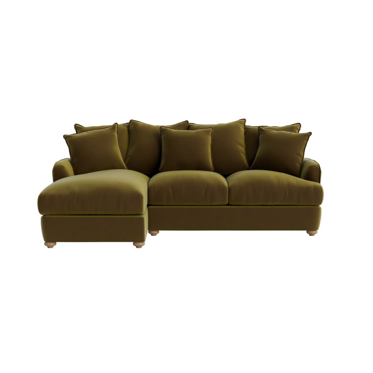 I love this corner sofa for its versatility and cosy appeal, making it a great addition to both modern and traditional interiors. Its rich olive-green colour adds warmth and depth, working particularly well in earthy, neutral, or minimalist schemes. The plush cushions and chaise extension provide excellent lounging comfort, perfect for family rooms or open-plan living spaces. For styling, consider pairing it with layered textures like a textured rug or throw pillows in contrasting colours to break up the solid tone. Keep accessories minimal to let the sofa be the focal point, and position it to maximise space or conversation flow, especially in larger rooms. It’s a practical choice that balances style with comfort, making it a smart investment for various interior styles.