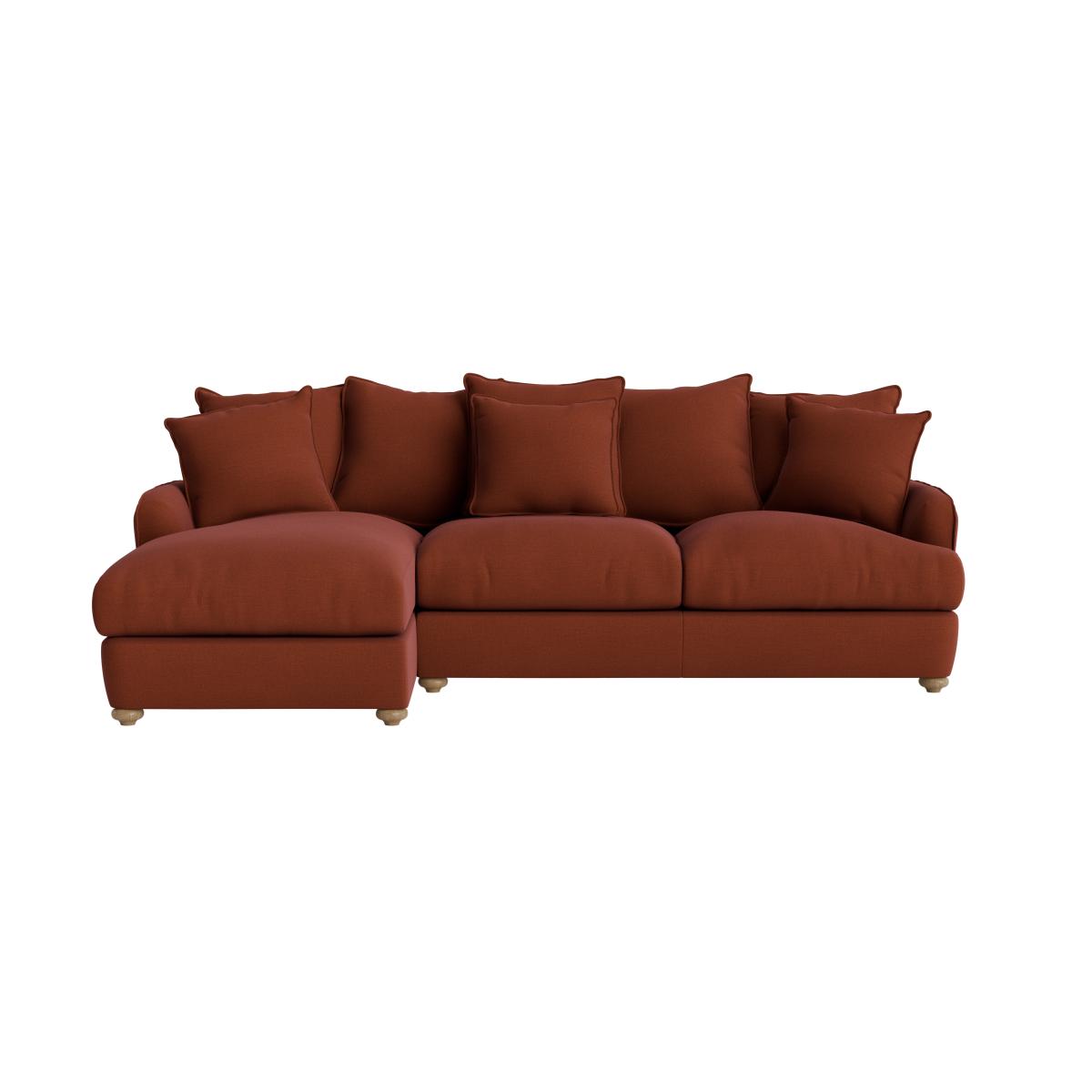 The Smooch is a versatile corner sofa that works well in both contemporary and cosy, more traditional interiors. I love its deep, inviting seat which makes it perfect for relaxed living spaces or family rooms. To style it effectively, consider adding a mix of cushions in tactile fabrics and layered textures to create visual interest and comfort. It pairs well with neutral or warm-toned rugs and simple statement lighting to keep the look understated yet inviting. Its robust shape also lends itself to minimalist schemes, while its plump cushions make it suitable for more layered, eclectic setups. Overall, it's a practical choice that can anchor a lounge or open-plan space beautifully, offering plenty of seating with a laid-back, stylish feel.