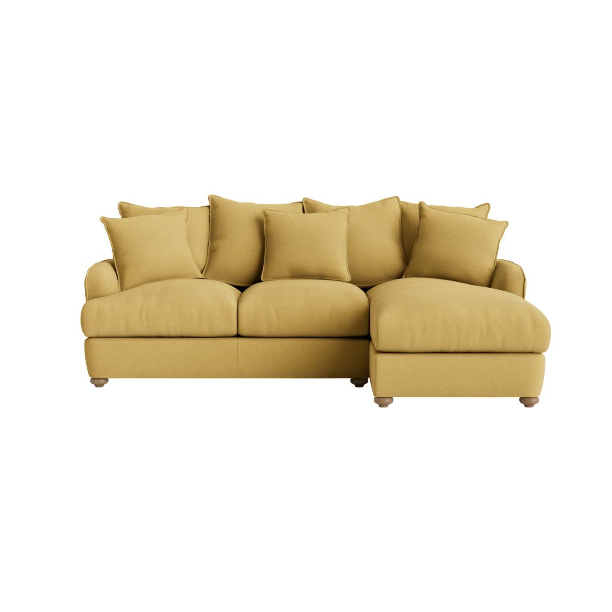 The Smooch is a versatile corner sofa that works well in both contemporary and cosy interiors. I love its soft, inviting shape and the relaxed arrangement of cushions, which makes it perfect for informal family living or entertaining guests. Its lemon-yellow colour adds a cheerful touch and pairs nicely with muted tones or bold, contrasting accessories. For styling, consider adding textured throws or statement cushions to personalise your space, and keep the surrounding decor simple to let the sofa be the focal point. It's practical too, with ample seating and a laid-back feel, making it an ideal choice for relaxing rooms or open-plan living areas.