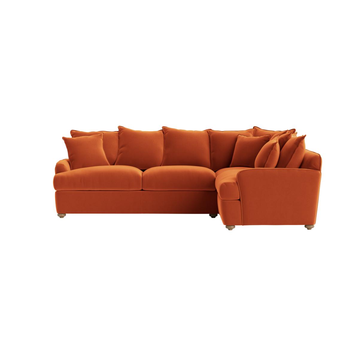 I love this corner sofa bed for its versatility and welcoming silhouette. It's perfect for a relaxed living space that doubles as occasional guest accommodation, thanks to its sofa bed functionality. The rich, warm colour works particularly well in cosy, mid-century modern, or eclectic interiors, adding a pop of colour without overwhelming the space. For styling, consider pairing it with neutral-toned accessories and layered cushions to create a comfortable yet polished look. Pairing it with a simple rug and minimalist side tables will help anchor the design without cluttering the space, making it ideal for both everyday living and entertaining.