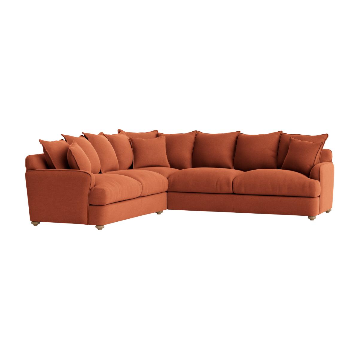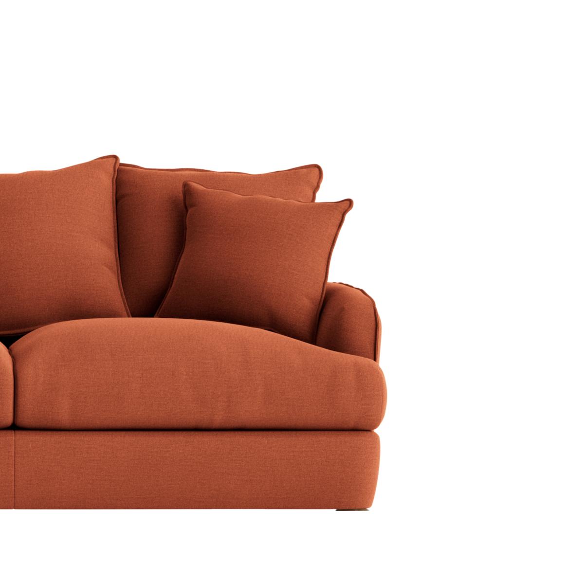 I love this sofa for its versatility and inviting silhouette, making it a great anchor for both relaxed and more polished interiors. Its warm terracotta tone is perfect for adding colour without overpowering a space, and it works especially well in contemporary or boho schemes. Given its ample size, I recommend pairing it with low-profile, textured cushions and a throw to soften the look. For a cohesive aesthetic, style it against neutral walls or layered with patterned rugs and accessories for added depth. Practical tip: its corner design maximises seating in smaller rooms, making it a stylish yet functional choice for family living or entertaining spaces.