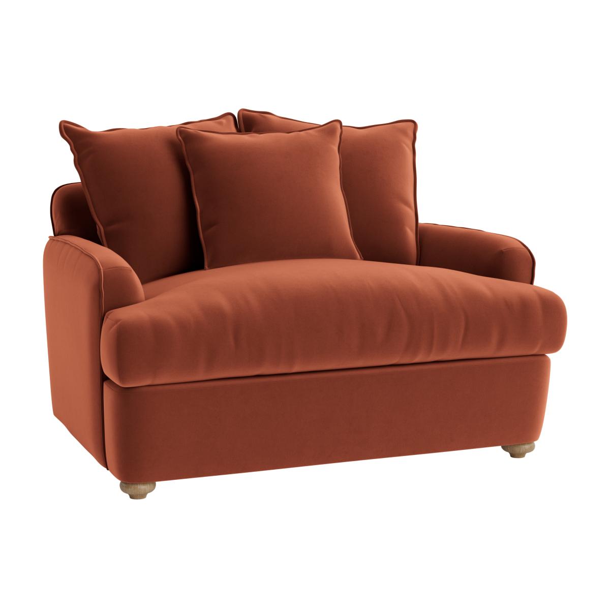 I love this sofa bed for its inviting and versatile design, making it ideal for both cosy living rooms and space-conscious flats. Its rich terracotta hue adds warmth and character, working well with neutral palettes, textured fabrics, or even bold accessories for a layered look. The Smooch is practical too - it’s perfect for those who need a sofa that easily converts into a bed, offering comfort and convenience in one piece. Styling tips include pairing it with tactile cushions and a neutral rug to keep the focus on the sofa’s colour and shape, while adding a few decorative throws can enhance its cosy appeal without compromising its modern charm.