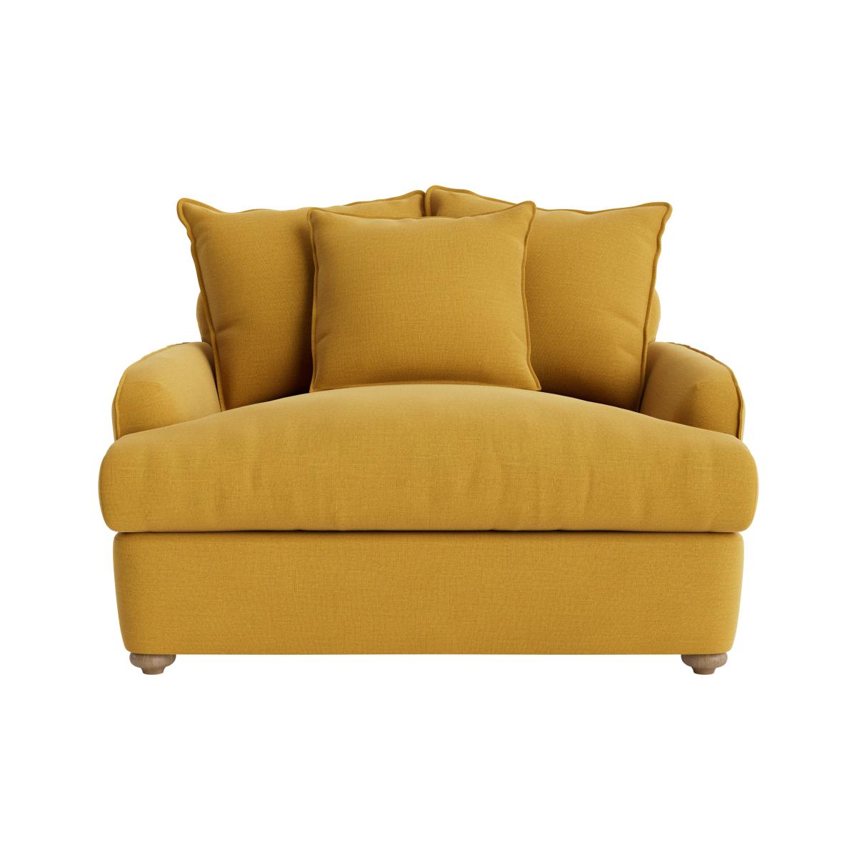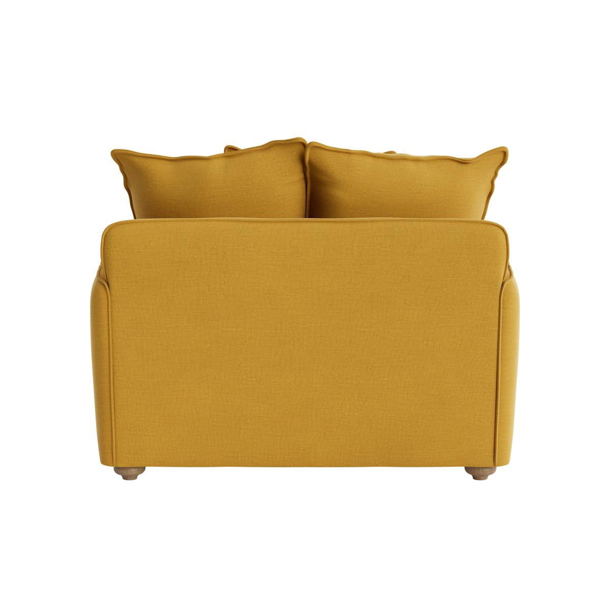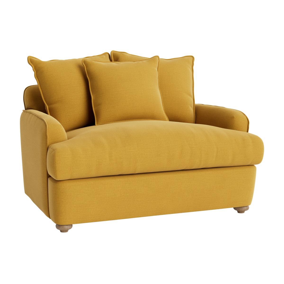 I love the Smooch love seat sofa bed for its versatility and contemporary charm. It works particularly well in small to medium living spaces, offering a compact seating option that easily transforms into a guest bed. Its vibrant mustard hue makes it a statement piece, especially paired with minimalist or Scandinavian interiors. To style it effectively, consider pairing it with neutral or soft-toned accessories to let the colour stand out, and add cosy textiles like textured throws or patterned cushions for a layered look. Its clean, rounded lines lend themselves to both modern and retro-inspired schemes, making it a flexible and practical addition to a range of interiors.