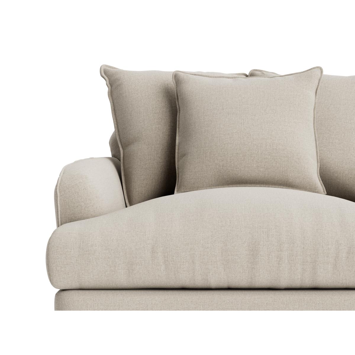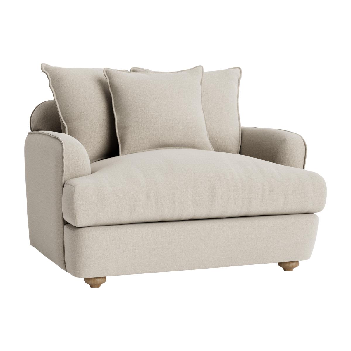 I love this love seat for its versatile and inviting design, making it a great addition to a variety of interiors from cosy scandi spaces to more minimalist schemes. Its neutral tone and clean lines provide a perfect backdrop for layering textures and colour, whether through cushions, throws, or surrounding decor. As a stylist, I’d suggest pairing it with natural materials like wool or timber to emphasise a relaxed, effortless vibe, or adding vibrant accents for a pop of colour. It works particularly well in small living rooms or as a complementary piece in larger open-plan spaces, offering comfortable seating without overwhelming the room. Practical tips include going for cushions with varied textures to add visual interest and considering a slipcover in a bold fabric or pattern for seasons or to introduce change easily.