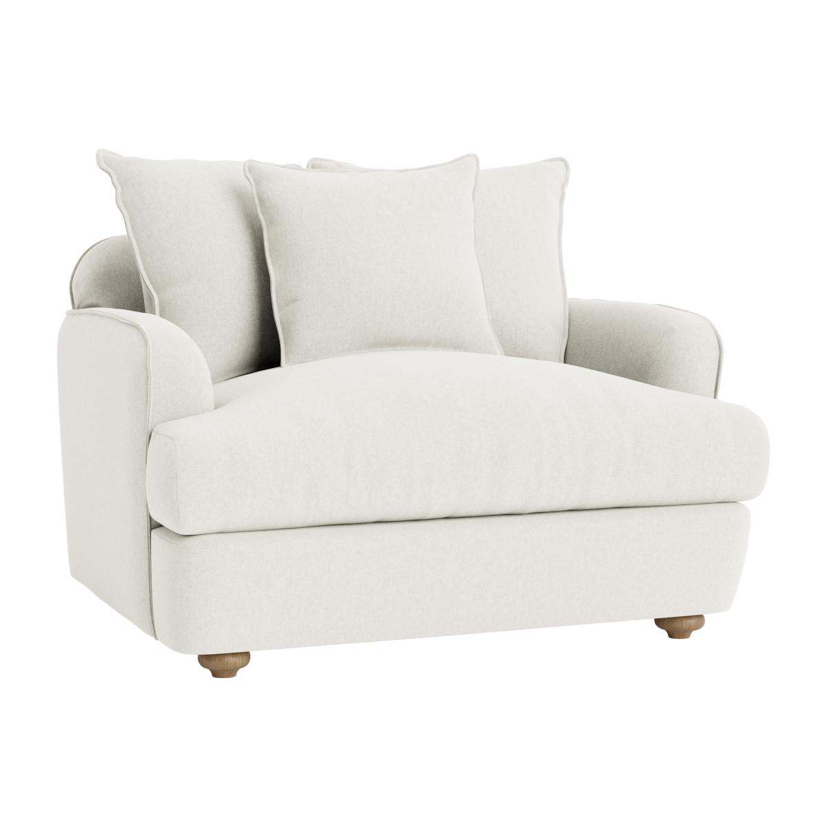 I love this love seat for its clean, understated design and versatility. Its neutral tone makes it an excellent foundation piece that can easily adapt to various interior styles, from scandi minimalism to cosy traditional settings. It works especially well in smaller living spaces or alcoves where a full sofa might overwhelm. For styling tips, consider adding textured throws or colourful cushions to introduce personality and comfort, making it feel more inviting. Pair it with soft lighting and complementary furniture in natural materials like wood or rattan to create a balanced and welcoming vibe. Overall, this piece offers a practical yet chic solution for those looking to maximise seating without sacrificing style.