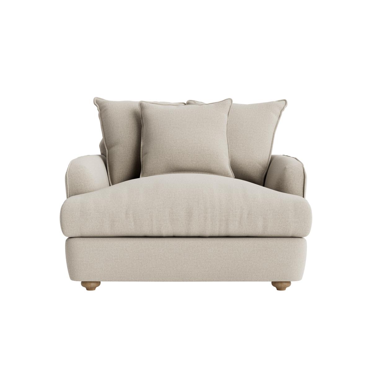I love this love seat for its compact yet inviting design, making it ideal for smaller living spaces or cosy corners. Its neutral tone offers versatility, allowing it to blend seamlessly with both modern minimalist interiors and more traditional schemes. When styling, consider layering with textured throws or patterned cushions to add depth and personality, while keeping the overall look balanced and relaxed. It works particularly well paired with wooden accents or soft rugs, creating a warm and welcoming environment. Practical tips include choosing lightweight accessories for easy rearrangement and ensuring its understated elegance is complemented by adequately supporting lighting to highlight its shape and fabric texture.