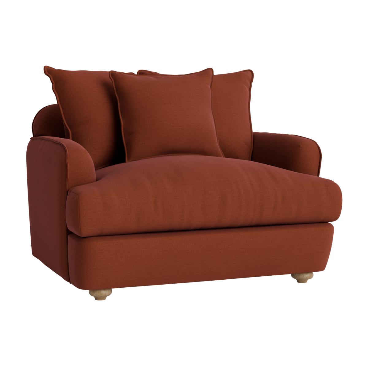 The Smooch Love Seat is a versatile piece that adds warmth and comfort to a variety of interiors, from cosy traditional spaces to more eclectic, relaxed settings. I love its inviting, plush design and rich, earthy tone, which works particularly well with natural materials like wood and woven textiles. It pairs beautifully with layered cushions and throws in contrasting textures and colours, making it easy to adapt to different seasons and moods. For styling tips, consider placing it alongside a small coffee table or layered with a vintage rug to create a welcoming nook. Its approachable size makes it ideal for smaller living rooms or as a stylish addition to a larger seating arrangement.