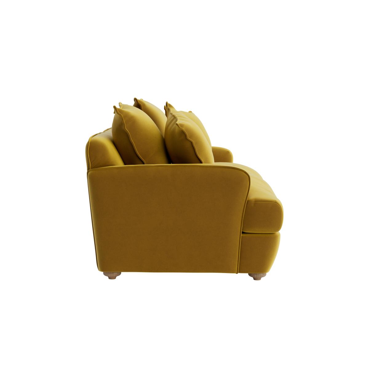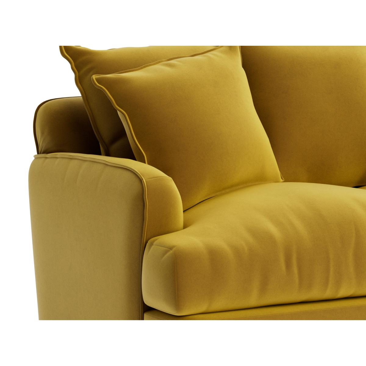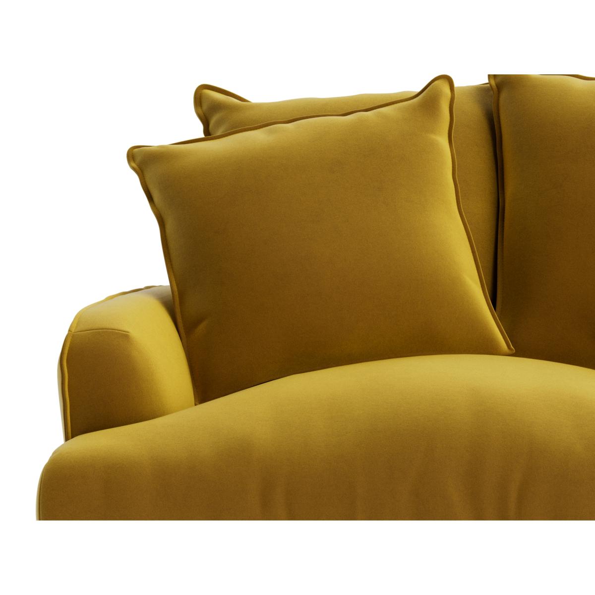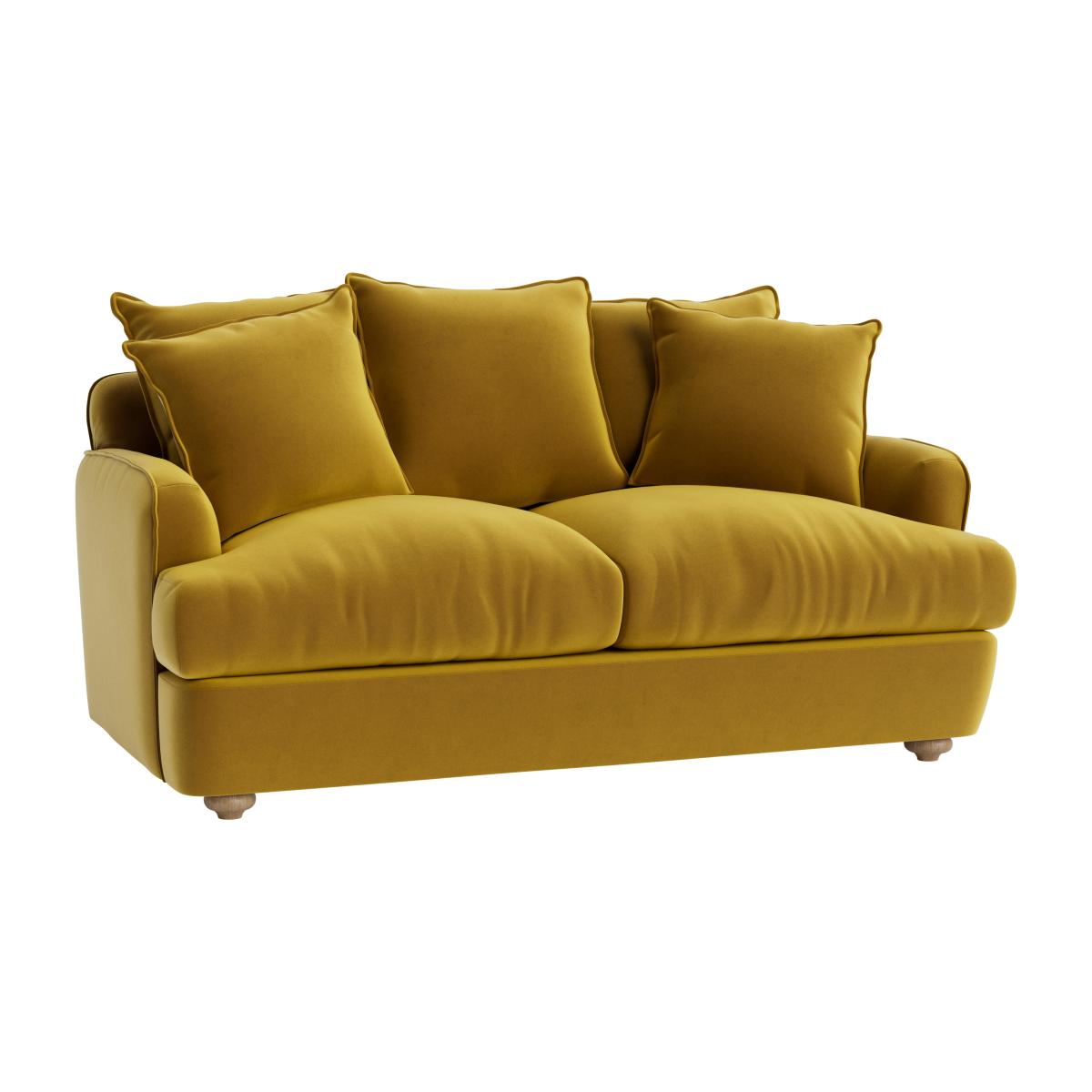 I love the sofa for its plush, inviting look and its versatile shape, making it a great focal point in both classic and contemporary interiors. Its rich mustard hue can add warmth and colour to neutral schemes, or work seamlessly in eclectic or vintage-inspired spaces. For styling tips, consider pairing it with patterned cushions or throws in complementary tones to add texture and interest. To keep the look fresh, try balancing its bold colour with understated accessories and layered lighting. The sofa’s relaxed yet refined silhouette makes it adaptable for cosy living rooms or open-plan spaces, where it can anchor a seating area or serve as a statement piece.