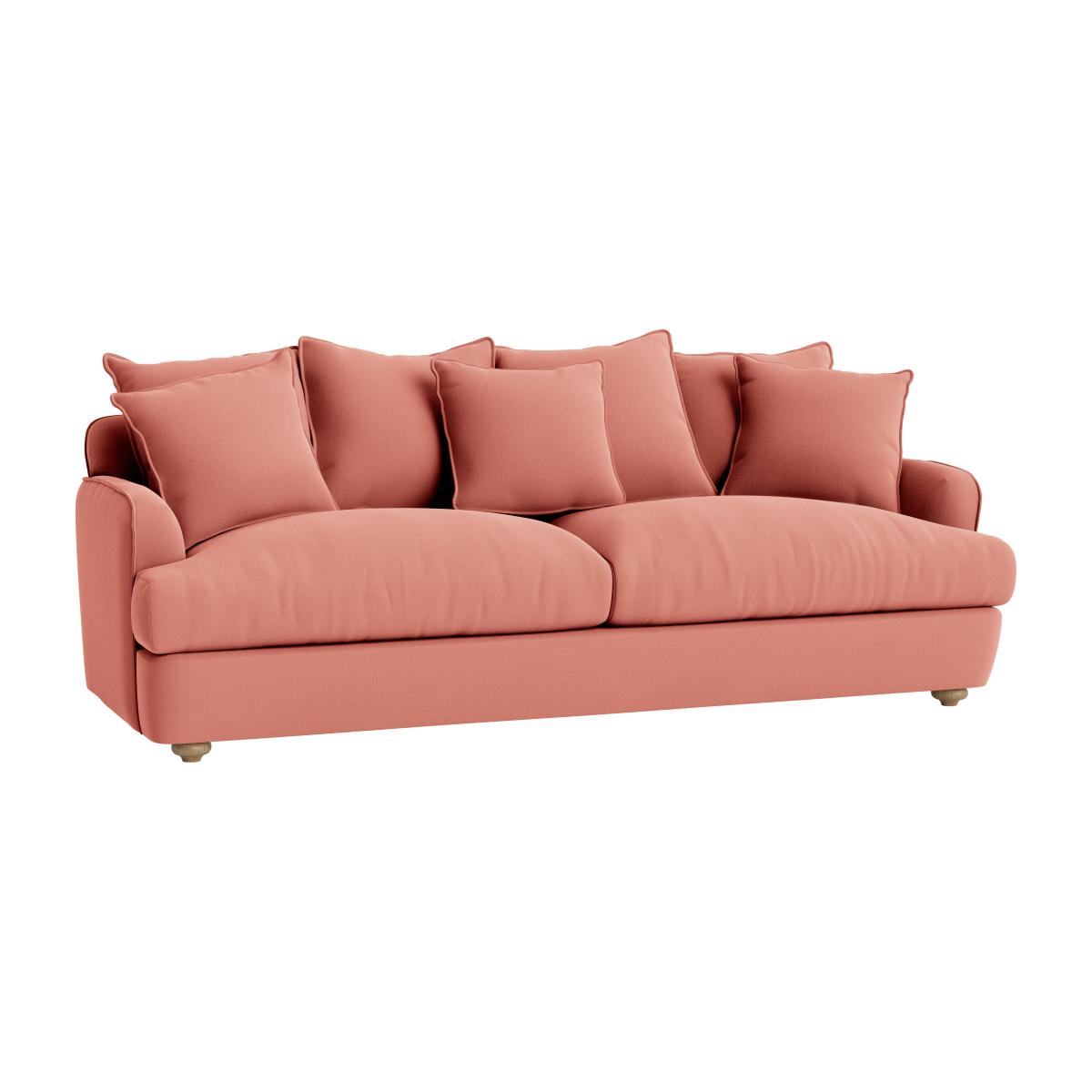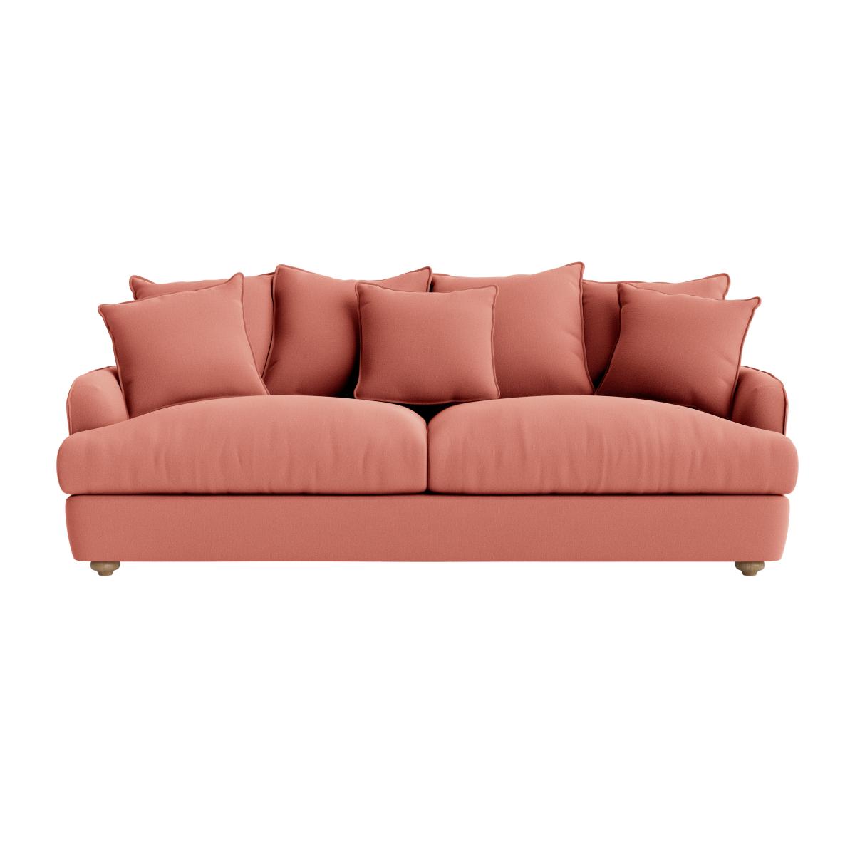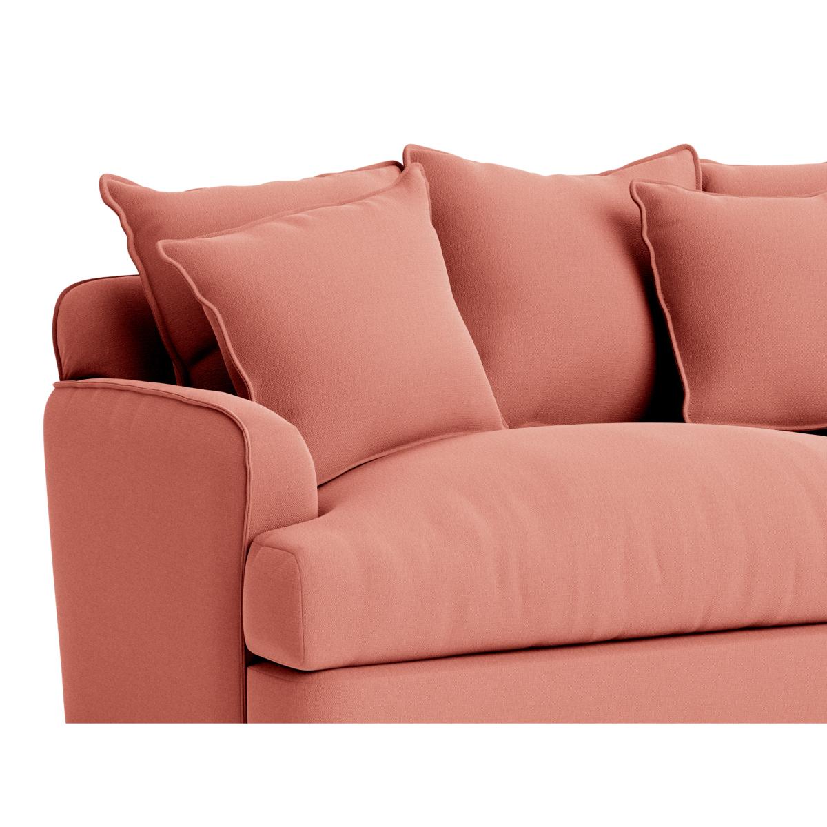 I love the smooch sofa for its inviting and plush design, making it a versatile statement piece in both modern and classic interiors. Its soft, rounded silhouette works beautifully in cosy living rooms or relaxed open-plan spaces, especially when paired with complementary soft furnishings like textured throws or patterned cushions. For styling, consider adding contrast with sleek metallic or glass side tables to balance the softness, or go for a layered look with a textured rug underneath. The peachy tone lends itself well to warm colour palettes but can also be freshened up with cooler accessories like navy or grey tones, making it a flexible choice for different schemes. Overall, it’s a comfortable yet stylish addition that encourages everyday living and easy decorating.