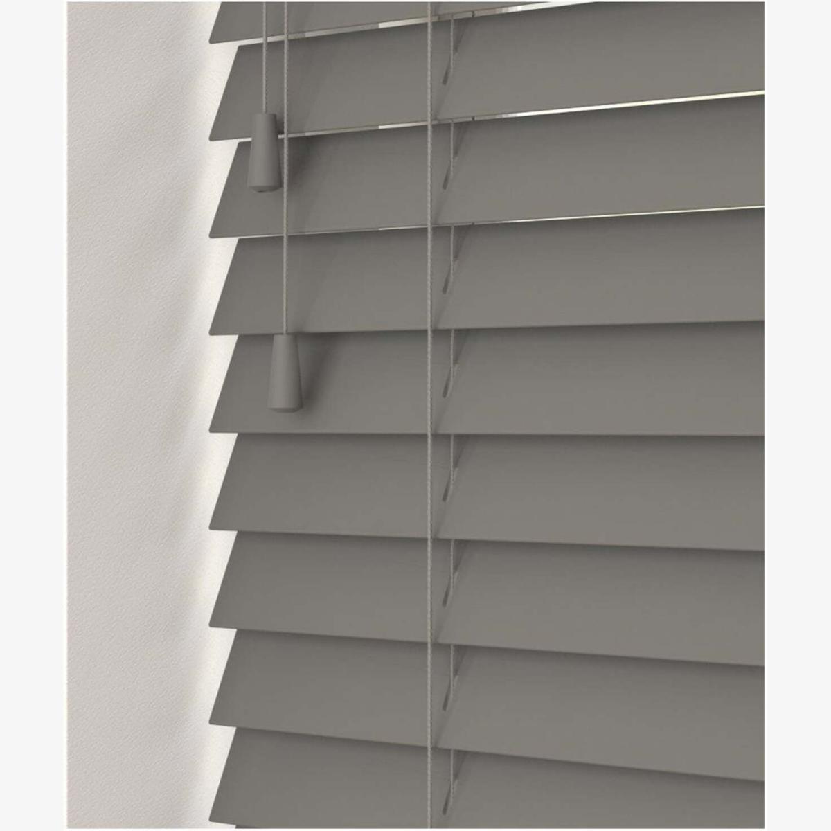 Smooth Finish Faux Wood Venetian Blinds with Strings 130cm Drop - Smooth Grey / 90cm