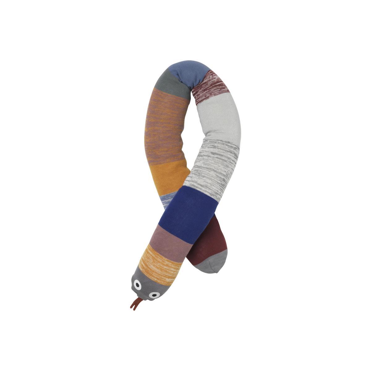 Snake is an adorable companion for your tiny tots. It is an ingenious long cushion in the shape of a snake that serves as both a trendy, decorative valance and a cuddly toy. Eco-friendly, it is created from 100% organic knitted cotton stuffed with recycled polyester foam. For her children's collection, Trine Andersen, the founder and designer of the Danish brand Ferm Living, has created a series of objects with simple, colourful patterns with a Scandinavian feel where design, quality and nature are intimately linked.