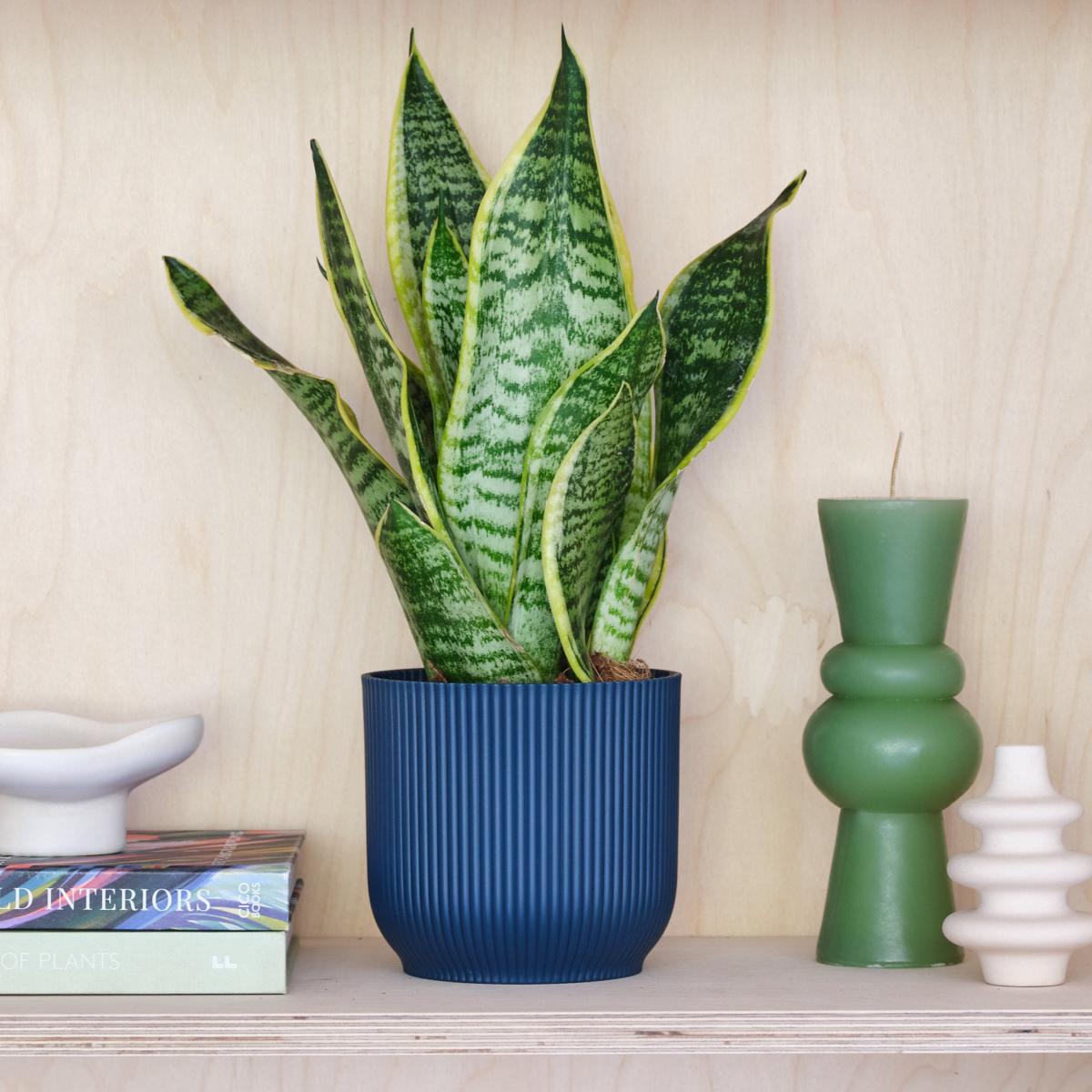 Snake House Plant in Elho Pot Plastic Navy