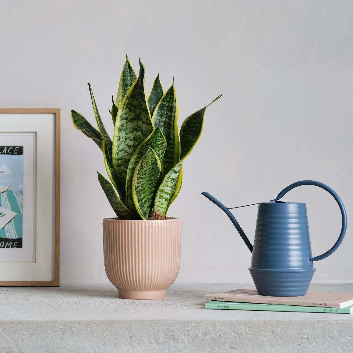A very hardy and low maintenance houseplant, the Snake Plant is very tolerant of any accidental neglect! According to studies, it’s one of the best plants for improving air quality, removing toxins from the air in your home. With its distinctive long, upright leaves with contrasting yellow edges, the Snake is one stylish plant! Variegation on its leaves may vary. Paired with a ribbed, perfectly-fitting ceramic pot and a Beards & Daisies watering can to help you look after your new plant. How to keep me happy: Please note: As this is a living product your plant may vary to the one photographed. Plant height measurement includes the pot. Width measurement is for the width of the pot only; width of the plant may vary. Please note, unfortunately we cannot deliver this item to Northern Ireland or the Channel Islands.