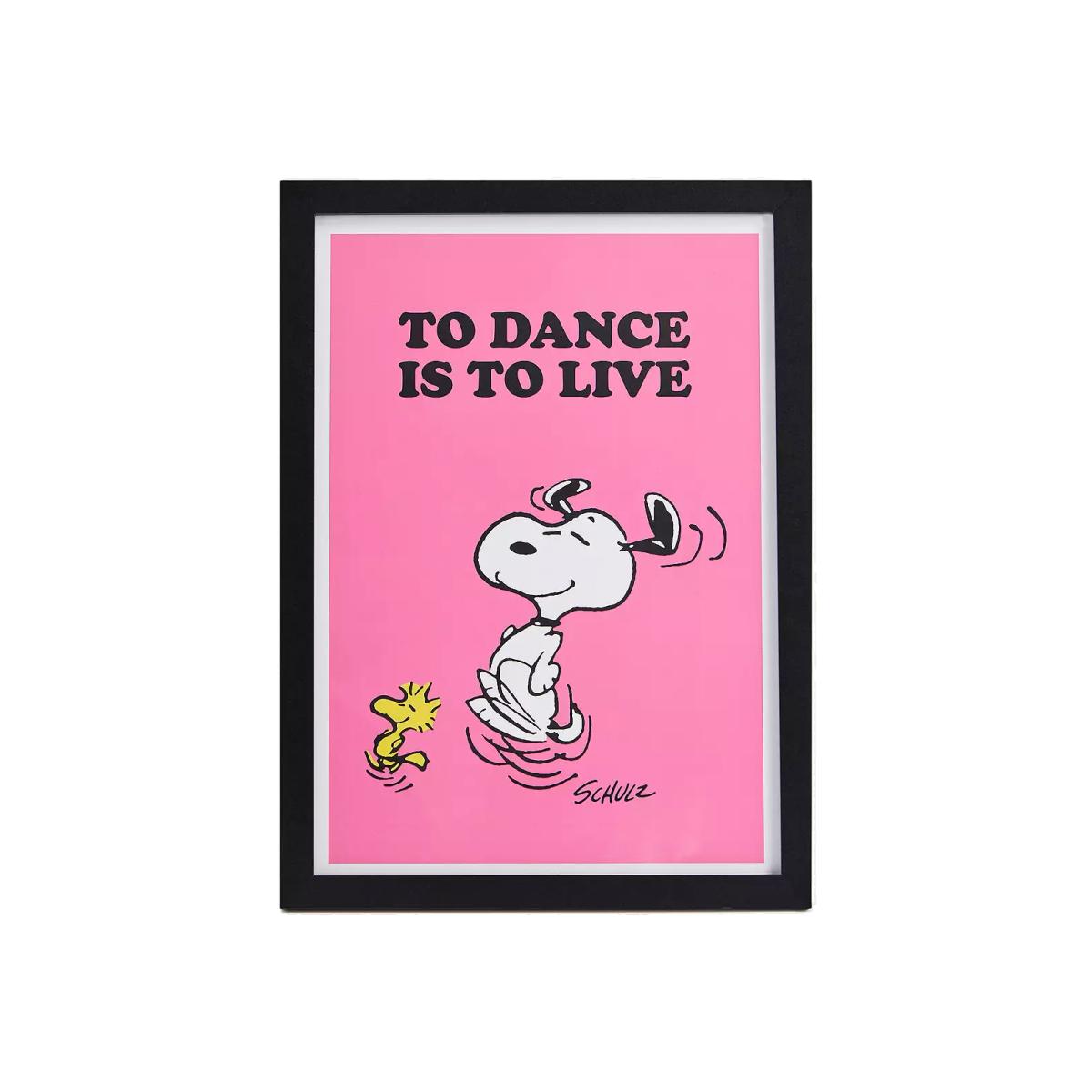 Playful framed wall art featuring the iconic Snoopy character in a lively dance pose. Crafted with high-quality materials for a vibrant and durable finish. Perfect for adding a touch of whimsy and nostalgia to any room's decor. **Content + Care** \- Framed Wall Art \- Wipe clean **Size** \- A3 \- 11.7″ X 16.5″