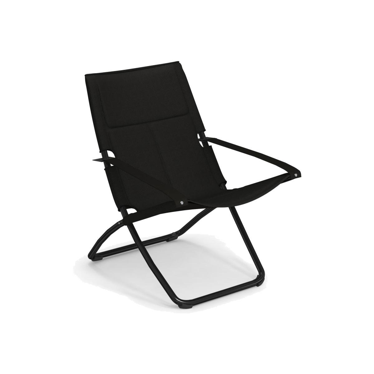 This is the “Cosy” version of the Snooze lounge chair by Emu: the ultra-elegant finishes give a refined dimension to this comfortable seat, which finds its place both indoors and out. Snooze Cosy is designed with an haute couture feel, with superb work on its materials and colours. The Snooze Cosy lounge chair features a double finish. The front is in synthetic mesh with Jacquard weaving. This soft, plush relief texture gives it a unique 3D look and exceptional comfort. The back of the lounge chair and the armrests are in Nubuck-look microfibre. Luxurious, smooth and soft, this fabric is extremely pleasant to the touch. The seat is sculpted with elegant topstitching and the armrests are connected to the seat by large metal buttons which add character to the silhouette. A real invitation to relax, the Snooze Cosy lounge chairis characterised by its generous dimensions. Its soft, enveloping seat is extra wide and deep. An armrest adjustment mechanism, simple yet original, lets you adjust the backrest between two positions: reading or rest. Snooze Cosy combines a steel tube structure with a bi-material fabric envelope that’s very resistant to bad weather and UV. The fabric envelope and armrests are very easy to maintain since they can be removed and then washed by hand (30°/40°). The flexibility of the cloth as well as the ergonomics of the product ensure optimal comfort. Folding, light and colourful, Snooze is ideal for furnishing a relaxation area ideal for long discussions in your garden. Snooze is the result of the re-interpretation of a historic EMU product: the Siesta relaxing armchair, launched by the company in the early 80s.