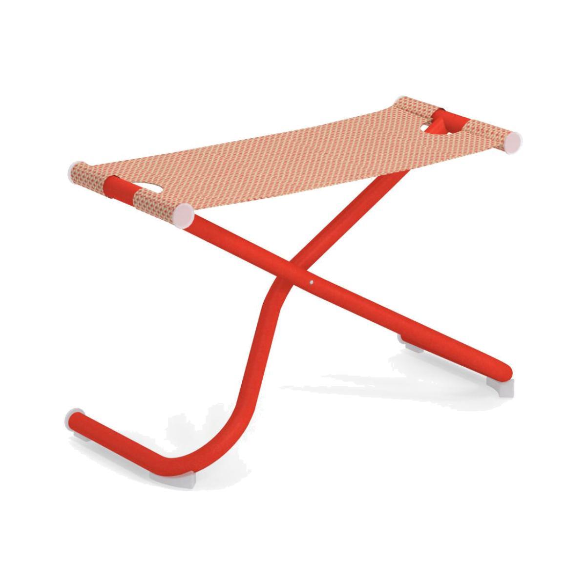 Snooze Pouffe / footrest combines a varnished steel tube structure with an Emu-Tex fabric seat. Very resistant, this technical outdoor cloth is both non-tear and anti-UV treated. It is heat resistant and can be cleaned very easily as it can be removed then washed with soap and water. The flexibility of the cloth as well as the ergonomics of the product ensure you optimal comfort, even with extended use. Folding, light and colourful, the Snooze pouffe / footrest is the ideal companion for the armchair from the same collection.