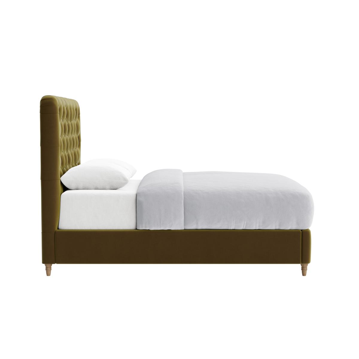 I love this bed frame for its plush, tufted headboard which adds a touch of luxury to any bedroom. Its olive-green colour offers versatility and warmth, making it ideal for both modern and eclectic interiors. It works particularly well styled with neutral bedding and textured cushions to highlight its rich fabric, or paired with contemporary lamps and artwork for a more polished look. Practical styling tips include keeping the bed central as a focal point, and balancing the colour palette with complementary accessories in earthy tones or soft pastels. The Snoozemuffin is a great choice for making a statement while maintaining a cosy, inviting atmosphere.