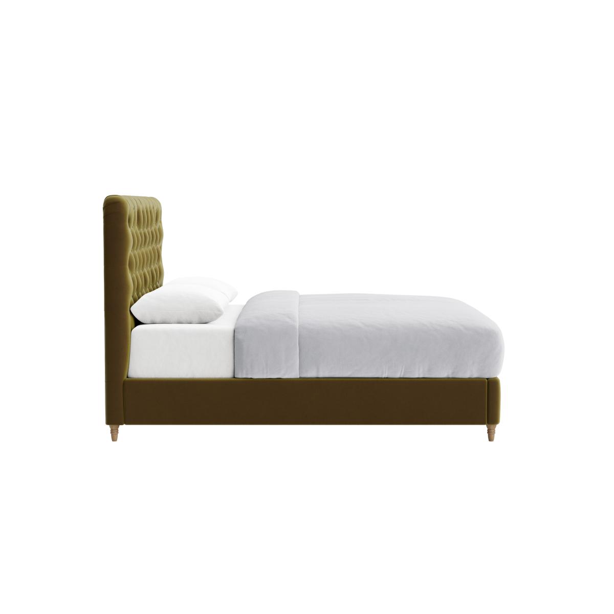 I love this bed frame for its bold, tufted headboard and rich colour, which can instantly add a sense of luxury and personality to any bedroom. It works particularly well in eclectic or vintage-inspired interiors, where its statement style can be highlighted with layered textures and chosen accessories. To keep the look balanced, consider pairing it with neutral bedding or minimalistic side tables and lighting. For a more contemporary setting, it can also serve as a playful focal point when styled with modern accents in complementary colours. Practical styling tips include using bed linens that emphasise the texture of the headboard-luxurious, matte fabrics work beautifully-and keeping the surrounding decor clean and uncluttered to let the bed be the main event.