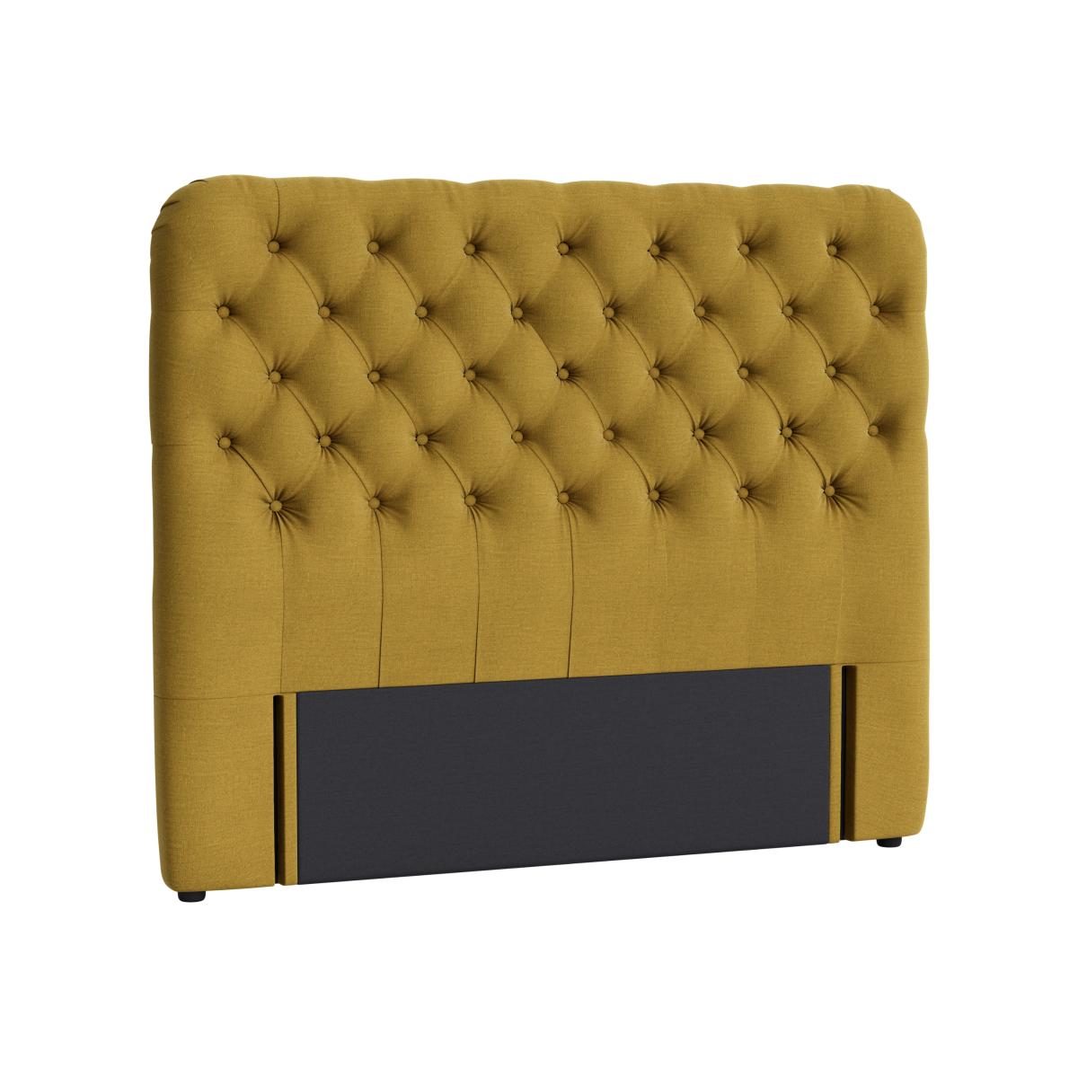 I love this headboard for its striking yet versatile design - the bold yellow upholstery combined with button tufting creates a real statement piece. It works well in both contemporary and eclectic interiors, adding colour and texture without overwhelming the space. For practical styling tips, consider pairing it with neutral or soft-toned bedding to let the headboard stand out, and add cosy throw pillows for extra comfort and visual interest. It’s also worth thinking about the placement: positioning it against a simple wall enhances its impact, while adding layered lighting can highlight its rich colour and texture for a polished look.