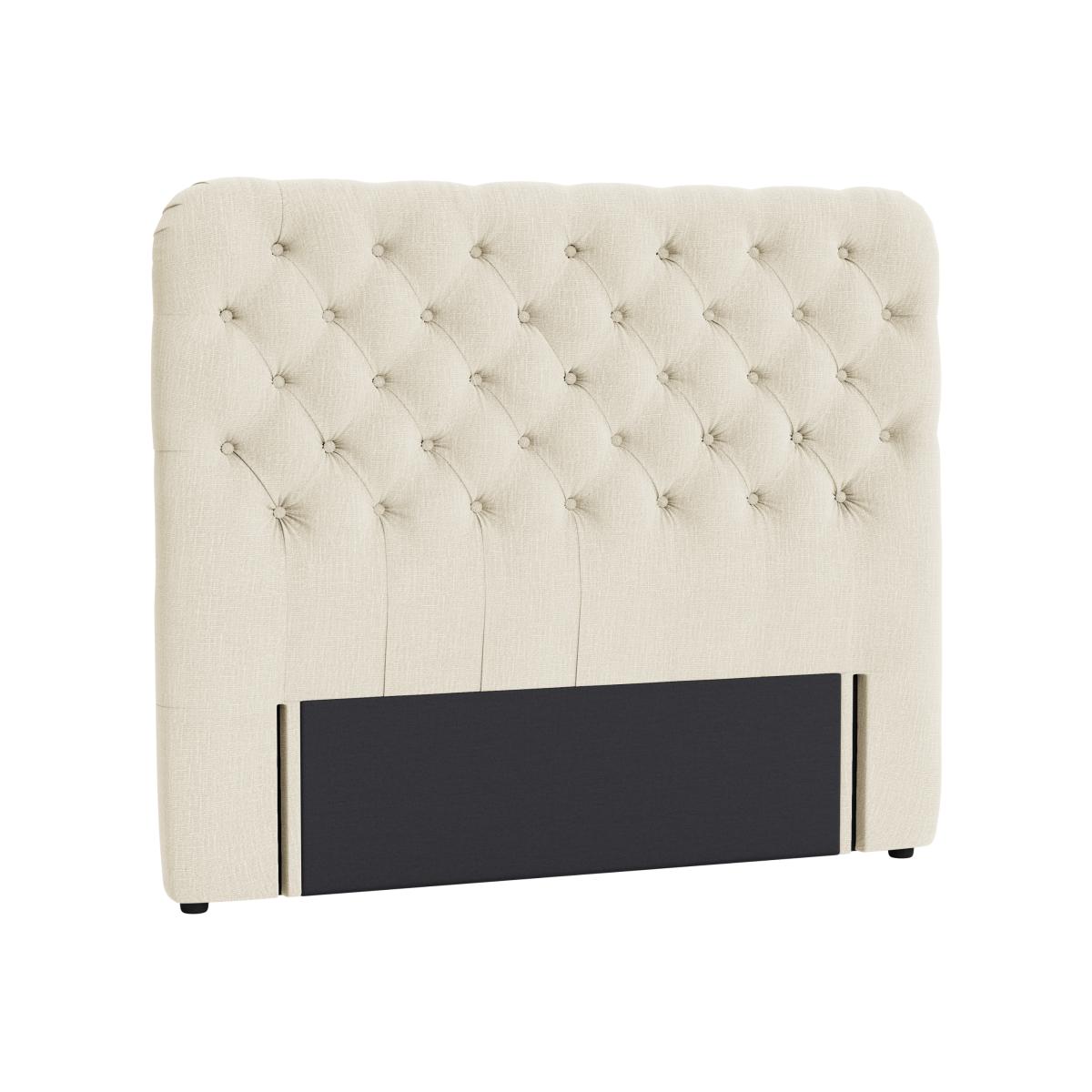 A lovely button back headboard with extra squish for that fresh from the oven feeling.