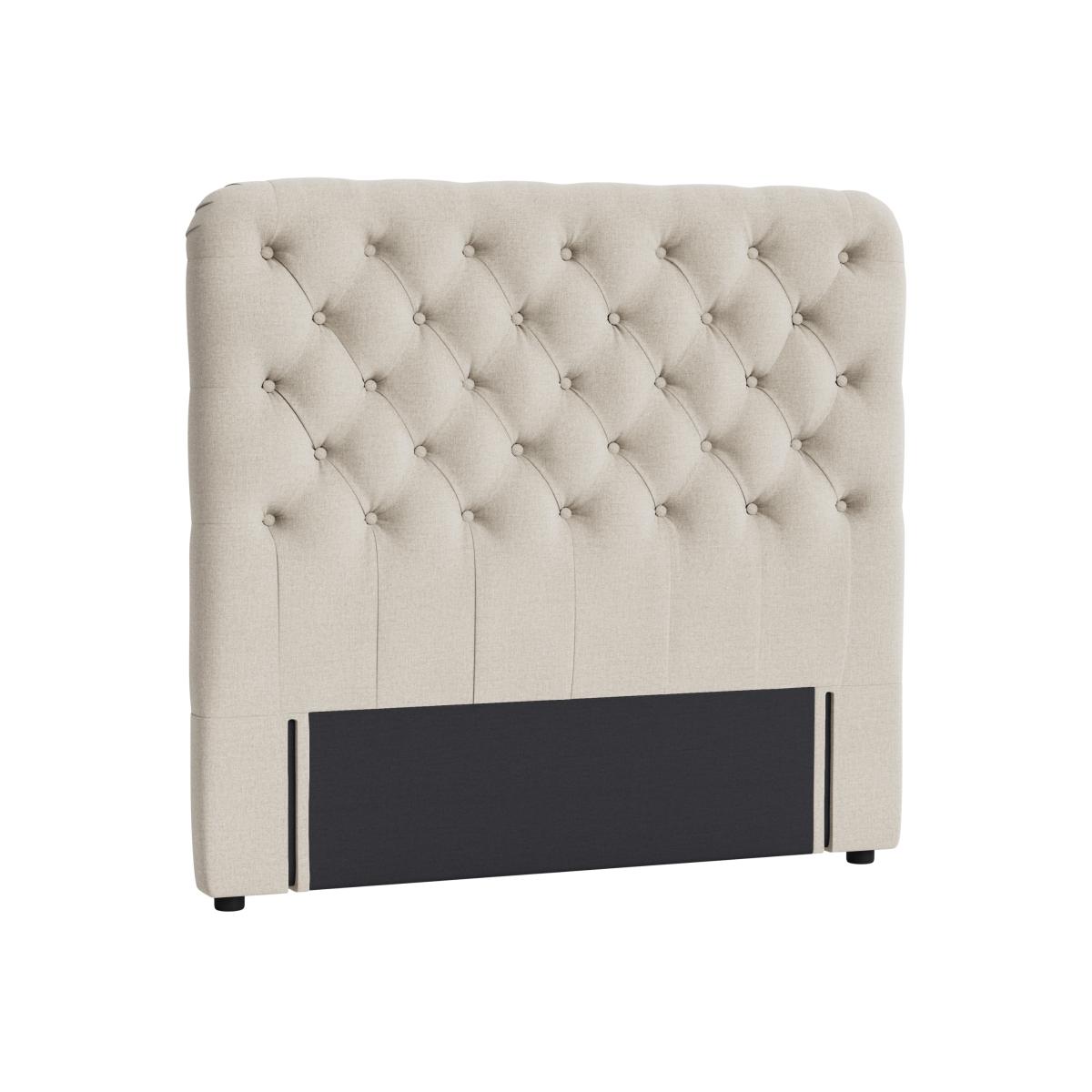 A lovely button back headboard with extra squish for that fresh from the oven feeling.