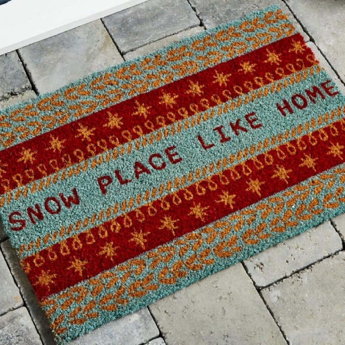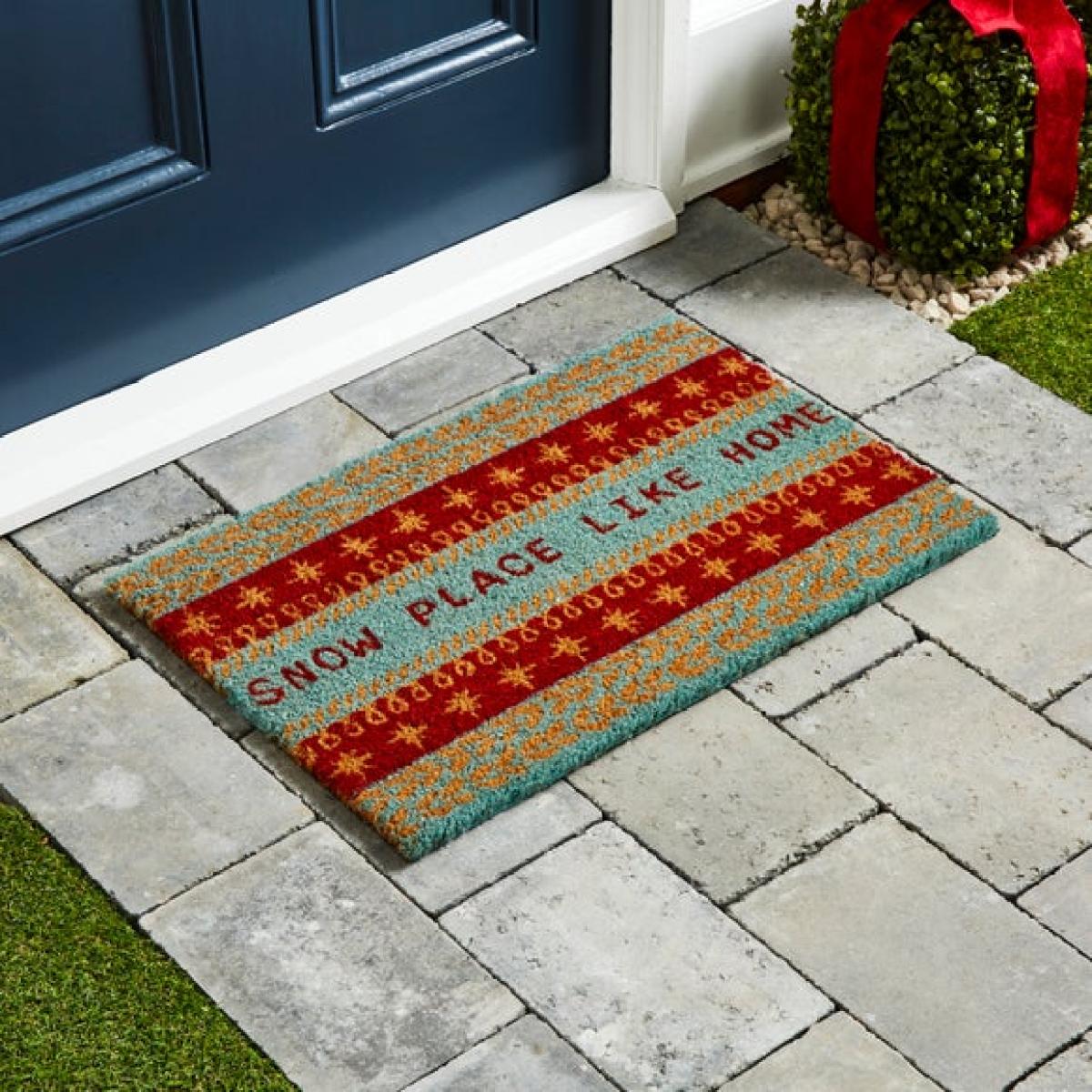 * 'Snow Place Like Home' text * Festive design * Coir doormat * 40cm x 60cm Welcome guests with a touch of festive cheer using the 'Snow Place Like Home' Coir Outdoor Doormat. Featuring a playful seasonal message and classic design, it’s perfect for adding warmth to your doorstep during the holidays. Made from durable coir, it’s tough on dirt and ideal for busy entrances. Measuring 40cm x 60cm, it fits most doorways with ease. A grreat way to greet friends and family.
