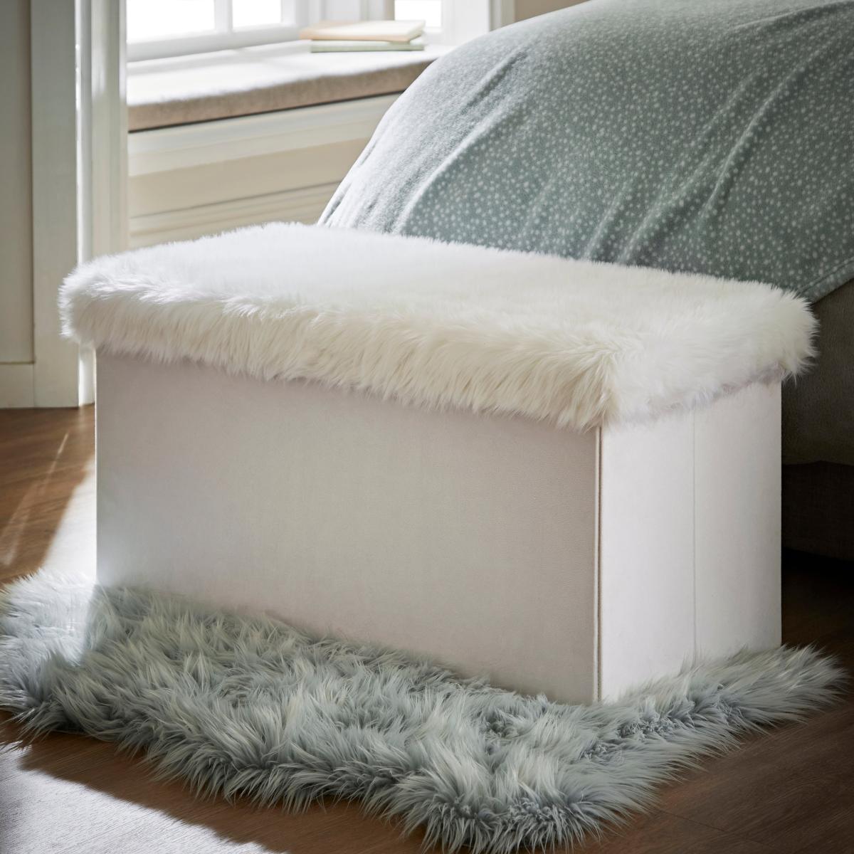 This Snowball Faux Fur Foldable Storage Ottoman assembles in seconds, so you can spend more time relaxing. Adding a stylish twist to your organisation, this storage ottoman comes with a fur-effect lid. This storage ottoman can also be used as a extra seat or footstool, or tucked away and folded when not in use.