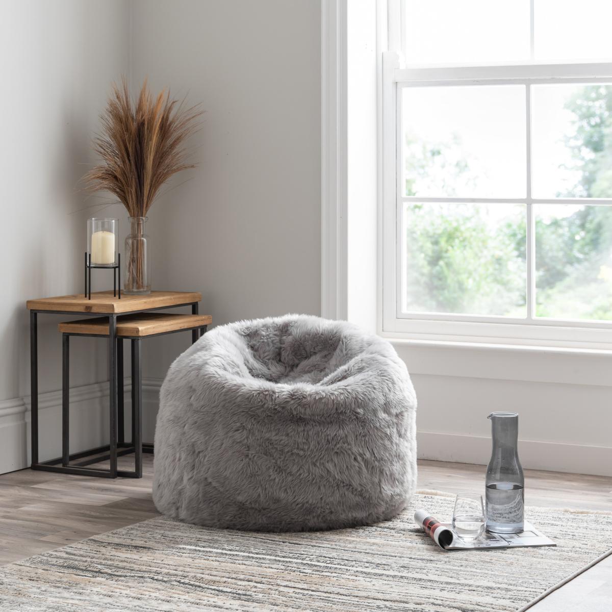 This sumptuously soft faux fur bean lounger is inspired by the natural beauty of freshly fallen snow. The pure grey, soft faux fur brings some wintery charm into your home. Finished with a non-slip base made from a durable non-woven, the lounger is generously filled with polybeads providing comfortable seating and support at the same time.