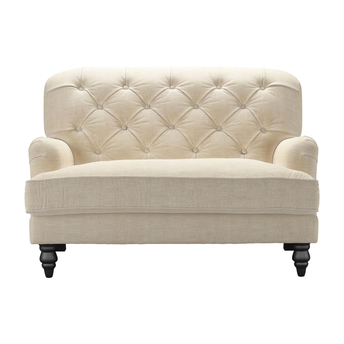 Snowdrop Button Back Loveseat in Chantilly Aquaclean Clever Chenille