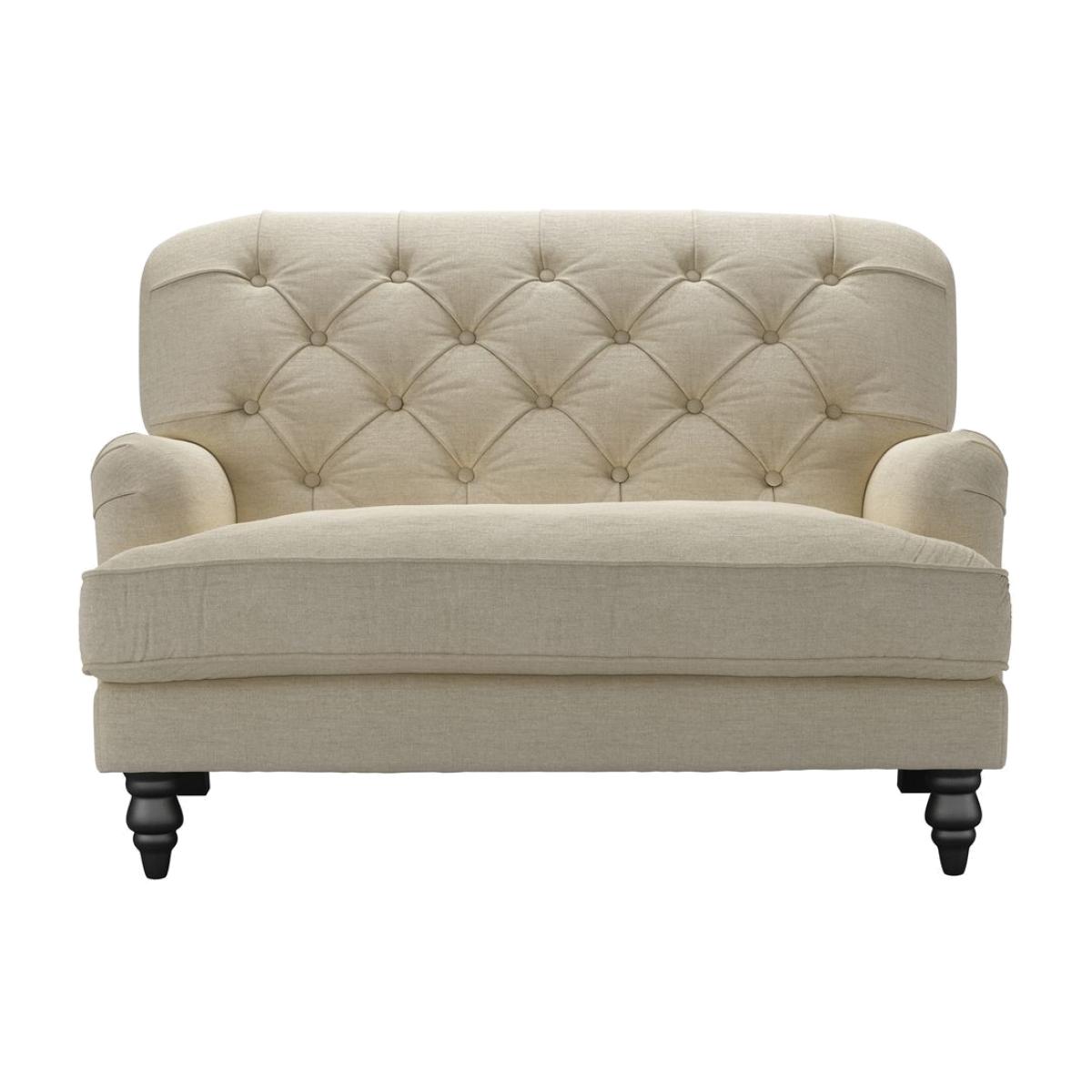 Snowdrop Button Back Loveseat in Pampas Hygge Smart Linen