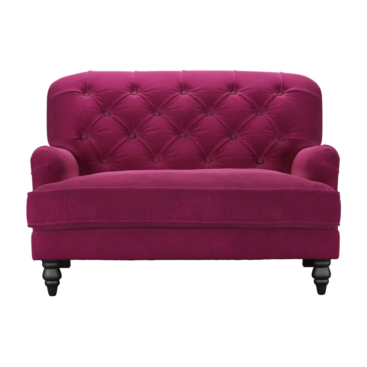 Snowdrop Button Back Loveseat in Persian Rose Smart Velvet
