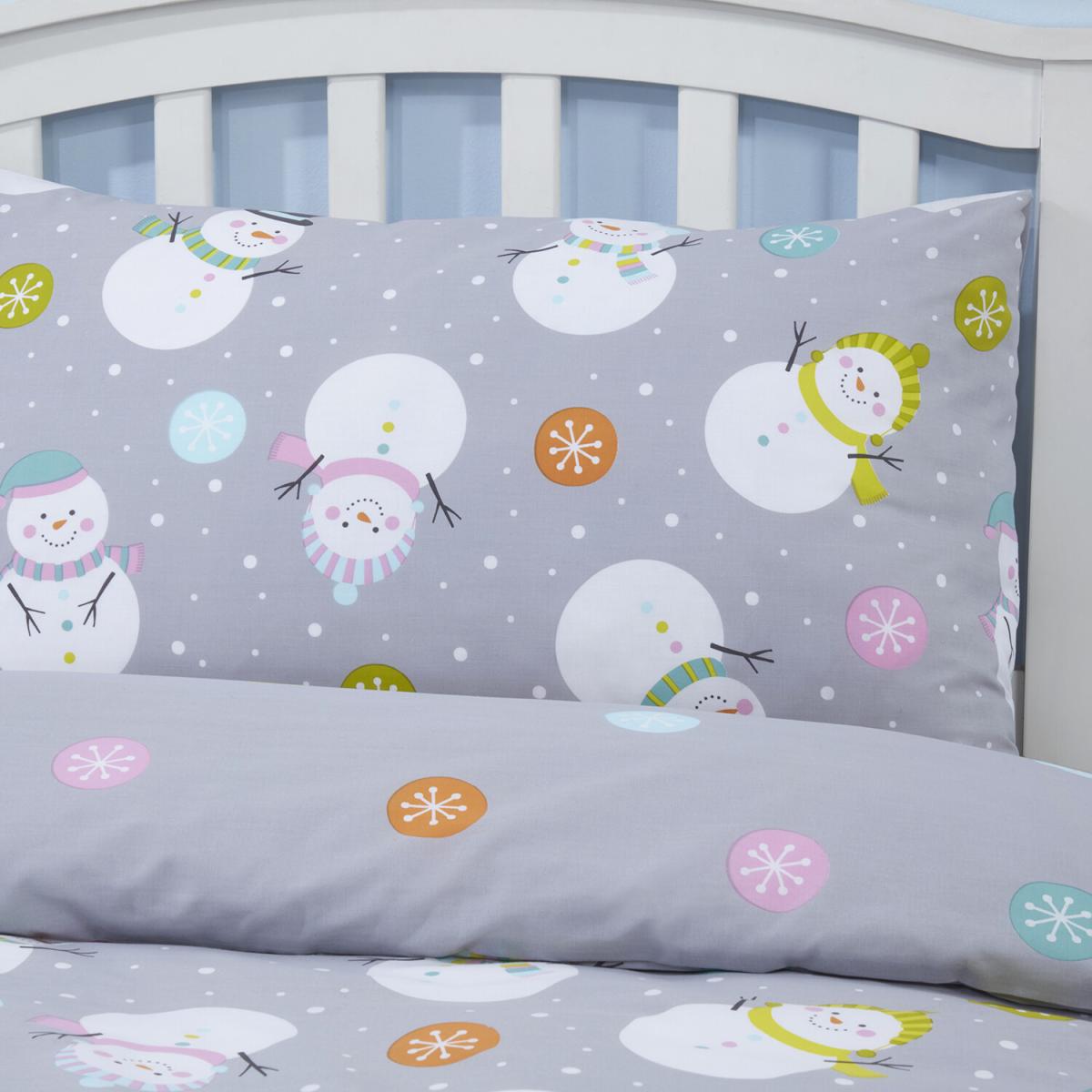 The perfect bedding for winter, the Snowmen Single Bed Duvet and Pillow Case Set will ensure anyone who falls asleep amongst it feels super cosy. It features all over prints of adorable snowmen who are sporting hats and scarves and is dotted with small snow dots and colourful snowflakes. Against a light grey background, this duvet set will look great no matter the bedroom's theme or colour scheme. This set comes complete with one matching pillowcase.