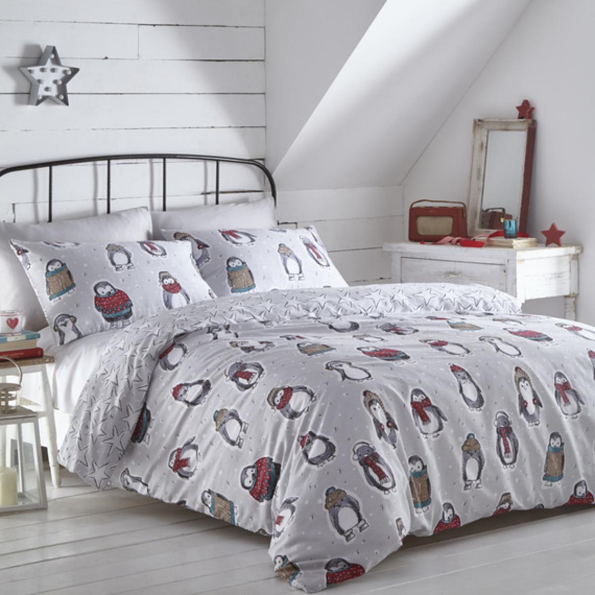 Snowy Penguins Duvet Set - Grey