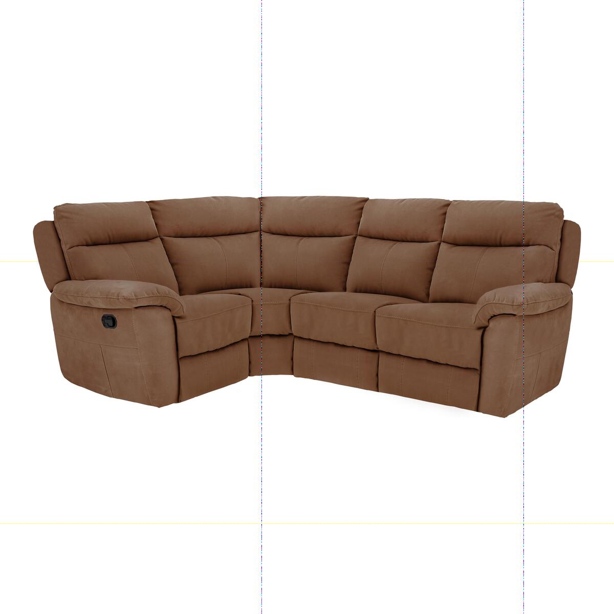 The Snug compact fabric recliner corner sofa lives up to its name, as its comfortably snug and fits beautifully into smaller spaces. Yet this sofa seats 4 with ease. Sink into the deep cushioning on sprung seats and feel pampered by the high back and integral headrests. The back cushions are fibre filled, while the seat cushions are foam and fibre, and the arm pads foam with a fibre top. This sofa looks great, with contemporary curves and attractive stitching detailing. The upholstery is a soft touch, quality fabric in a choice of lovely colours. Opt for fixed seat or be tempted by the power or manual 1 recliner, the power with USB ports. Part of the great value Snug collection, exclusively made for Furniture Village.