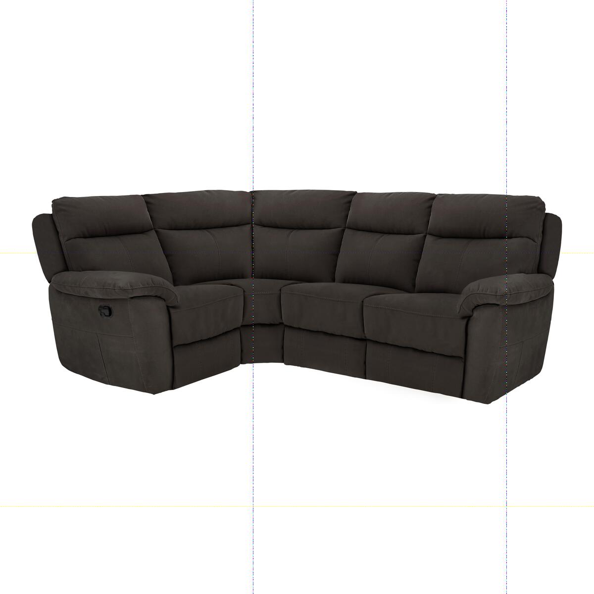 The Snug compact fabric recliner corner sofa lives up to its name, as its comfortably snug and fits beautifully into smaller spaces. Yet this sofa seats 4 with ease. Sink into the deep cushioning on sprung seats and feel pampered by the high back and integral headrests. The back cushions are fibre filled, while the seat cushions are foam and fibre, and the arm pads foam with a fibre top. This sofa looks great, with contemporary curves and attractive stitching detailing. The upholstery is a soft touch, quality fabric in a choice of lovely colours. Opt for fixed seat or be tempted by the power or manual 1 recliner, the power with USB ports. Part of the great value Snug collection, exclusively made for Furniture Village.