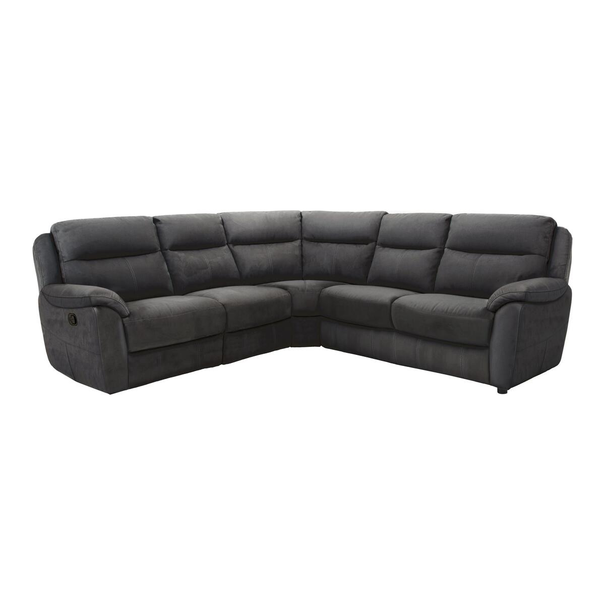 They’re exceptionally comfortable and snugly compact, so it’s no wonder the sofas and chairs in the Snug collection are so popular. They’re stylish with contemporary curved lines. And they’re wonderfully comfortable to relax in, deeply cushioned with high backs. Opt for fabric or leather upholstery in a choice of lovely colours. You may be tempted by the option of manual recliners or power recliners with USB ports. The Snug fabric recliner corner sofa is made for comfort. Stretch out on your own, or share this beautiful sofa with family and friends – it’s more than big enough to seat 5. Surrender to the luxury of the deep foam and fibre seat cushions on sprung seats, fibre filled back cushions and soft arm pads. This sofa has a high back with integral headrests, and you can go all out if you wish and make this sofa the ultimate place to unwind by adding optional manual or power dual recliners. The power recliners include USB ports. The manual and power recliner options here are priced with a single recliner. Please call our sale team for further options. Style is not sacrificed for comfort. This roomy corner sofa, part of the fantastic value Snug collection, is beautifully contemporary with curving lines and attractive stitching detailing. The upholstery is soft, high quality fabric, in a choice of colours. Top Tip. To keep your fabric sofa or chair looking good, plump the seat and back cushions and any scatter cushions regularly, and – where possible – turn and rotate to ensure even wear. Plumping and rotation is important as interiors settle over time, and some fabrics can show wear on areas of more use or in direct sunlight. Using a soft brush or vacuuming with the curtain attachment weekly prolongs the life of fabric upholstery. Ideally clean professionally annually. If your sofa or chair is a recliner model, please allow time for the recliner to settle. Minor gaps are necessary for ease of motion, and vary depending on floor type. Manual recliners can feel a little stiff at first, but the motion eases with use.