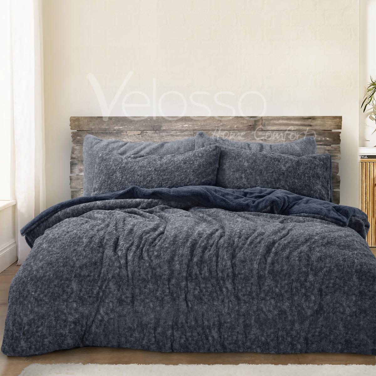 Wrap yourself in the warmth of this Super soft Teddy Marl Cosy Thermal Fleece Duvet Set, where luxurious comfort meets innovative warmth for a sleep experience like no other. This bedding ensemble redefines cosiness, enveloping you in softness and maintaining an optimal temperature through the night. Crafted from 100 easy-care teddy bear fleece, the duvet set offers an indulgent super soft touch that invites you into a world of plush comfort. The polyester fibres not only cocoon you in warmth but also regulate temperature, making it a perfect choice for the winter season. Designed to provide a superior sleep environment, this set features a button closing detail that secures your duvet while enhancing its aesthetic appeal. Designed for practicality, the set is machine washable, allowing for effortless maintenance while preserving its pristine quality. Available in single, double, king, and super king sizes, the set includes a duvet cover and pillowcases, catering to various bed dimensions. Experience the ultimate blend of softness and temperature control with the VELOSSO Teddy Marl Soft Cosy Thermal Fleece Duvet Set. Elevate your sleep sanctuary with a touch of luxury, where nights are embraced in plush comfort and innovative warmth.
