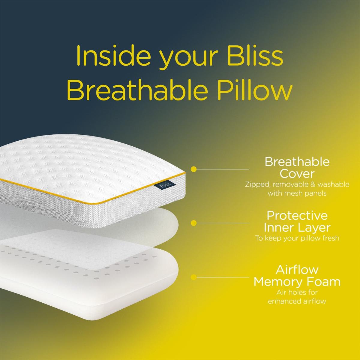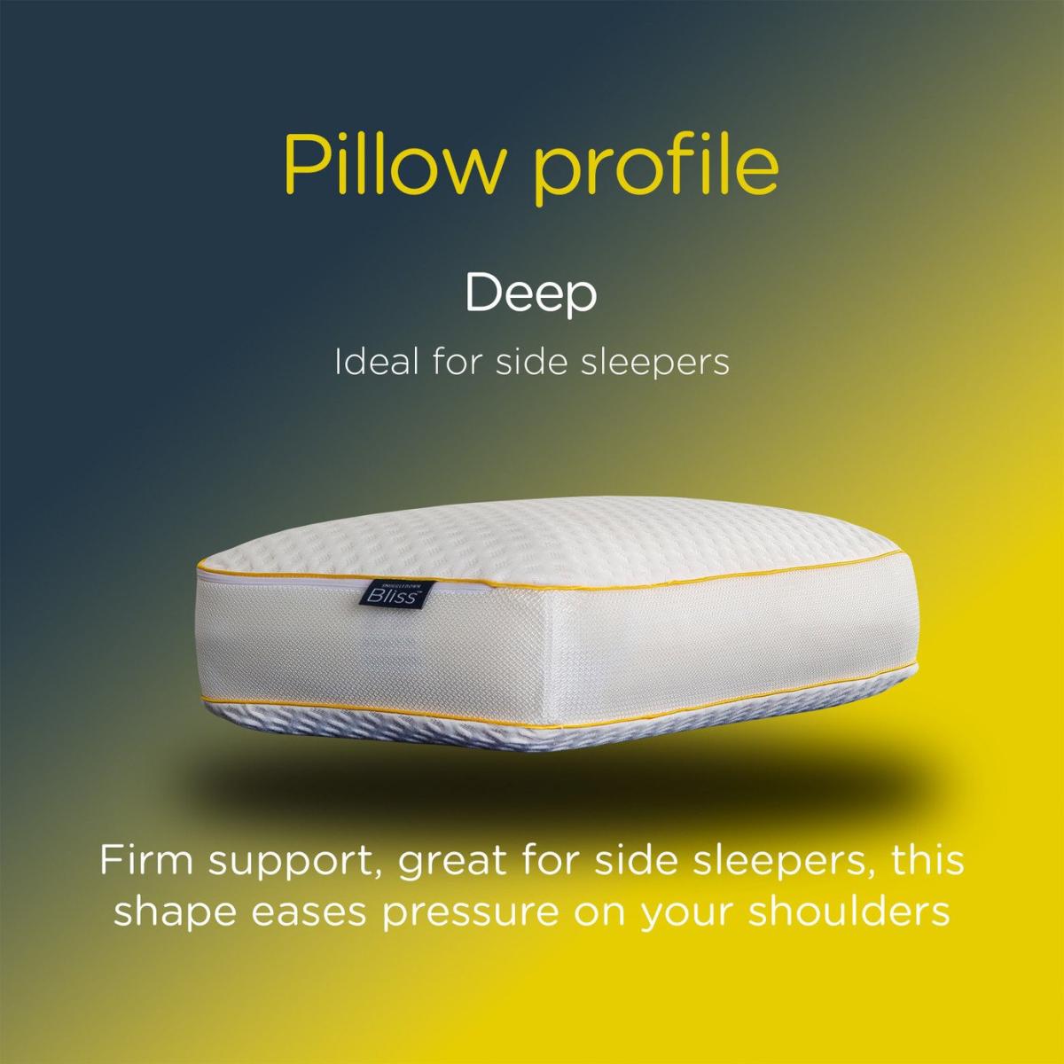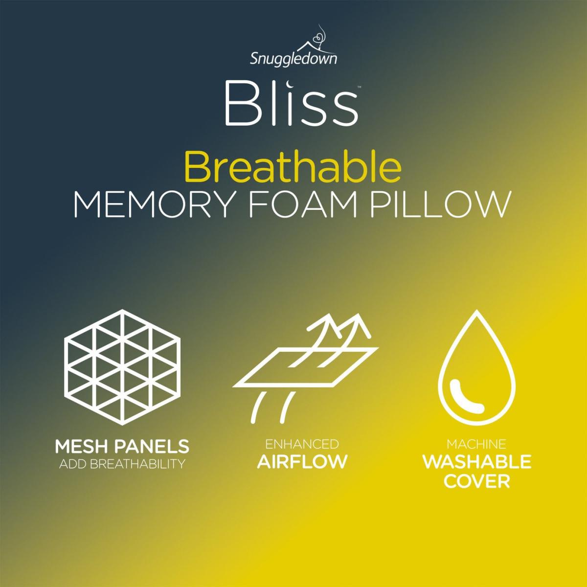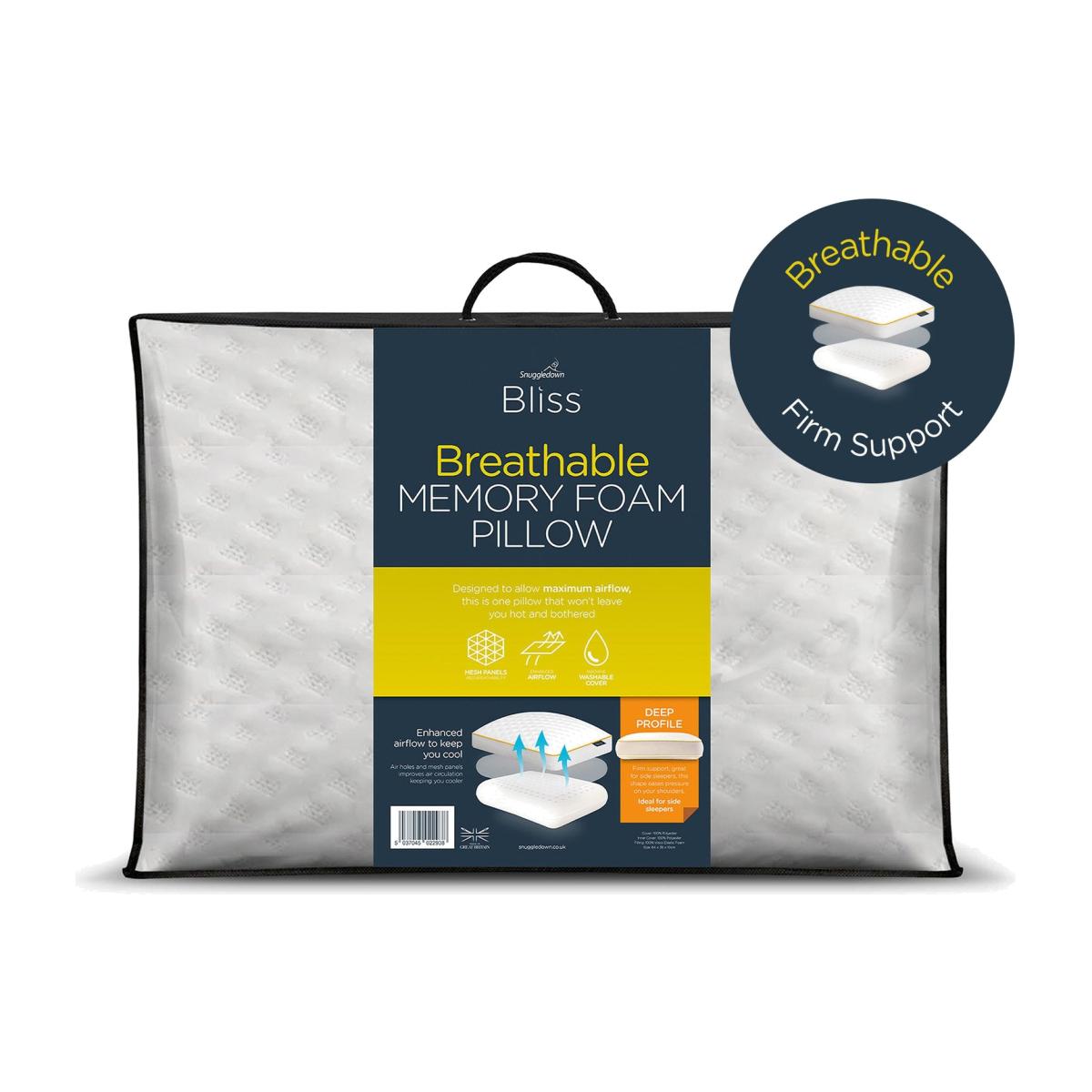 The Snuggledown Bliss Breathable Memory Foam Firm Support Pillow is beautifully soft and comfortable. Designed to keep you cool and comfortable, it has a knitted polyester cover with breathable panels and a memory foam core which features airholes to reduce heat build-up. Memory foam naturally adjusts to the heat of your body and shapes to the contours of your head and neck to ensure your spine is aligned as you sleep. This means you can relax into a great night's sleep and wake up free from aches and pains. With a deep profile and firm support, you will benefit greatly from this pillow if you're a side sleeper. The shape eases pressure on your shoulders and gently encourages correct spinal alignment and posture. Easycare, the cover can be zipped off and can be machine washed and tumble dried. Pack quantity: 1. Cover made from 100% polyester. Filling made from 100% memory foam. Memory foam. Firm pillow. Suitable for side sleepers. Size L38, W64cm. Machine washable covers. Suitable for tumble drying. Non-allergenic.
