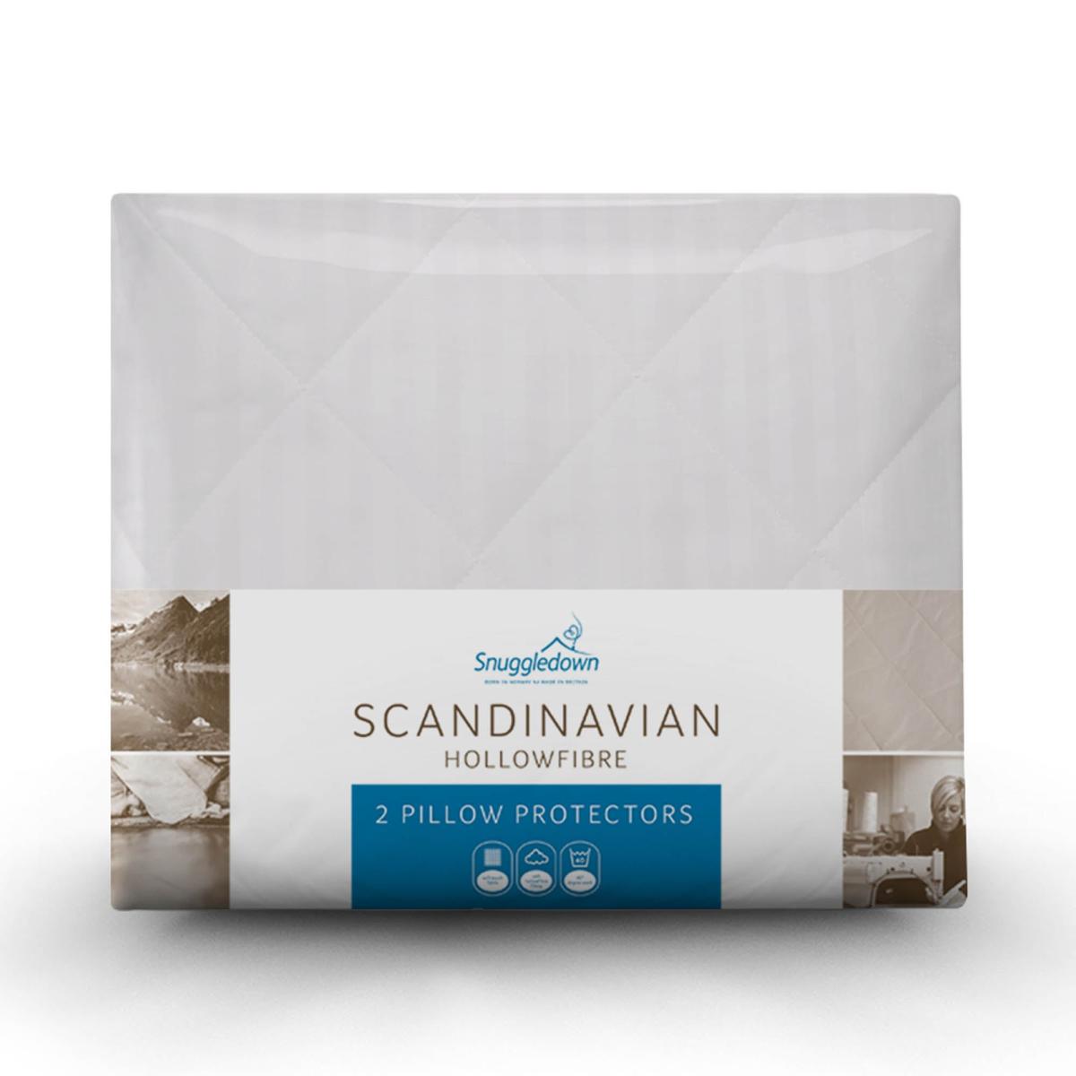 * Hollowfibre Filling* Non Allergenic Cover for extra protection* Zip Closure* Microfibre Cover* Machine Washable The Snuggledown Scandi Pillow Protectors offer an added layer of comfort and protection for your pillows. Featuring a soft touch microfibre cover and quilted hollowfibre filling, these protectors shield your pillows from everyday wear and spills, extending their lifespan. With a convenient zip closure, they fit easily onto any standard pillow and are machine washable for hassle-free maintenance. Non-allergenic, these protectors provide peace of mind and comfort, making them essential for allergy sufferers.