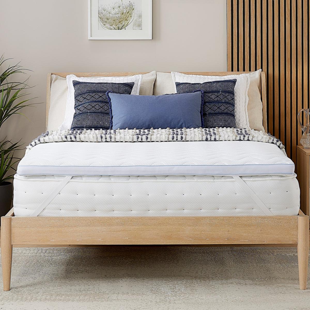 * Cooling technology * Machine washable * Elasticated straps Designed for a cooler, more comfortable sleep, this mattress topper features Hydrocool Eco moisture control technology to help regulate body temperature throughout the night. A 5cm depth of supportive Airstream fibres gently cushions the body, relieving pressure and promoting natural alignment. Elasticated straps ensure a secure fit, while the soft-touch knitted cover is removable and machine washable for effortless maintenance.